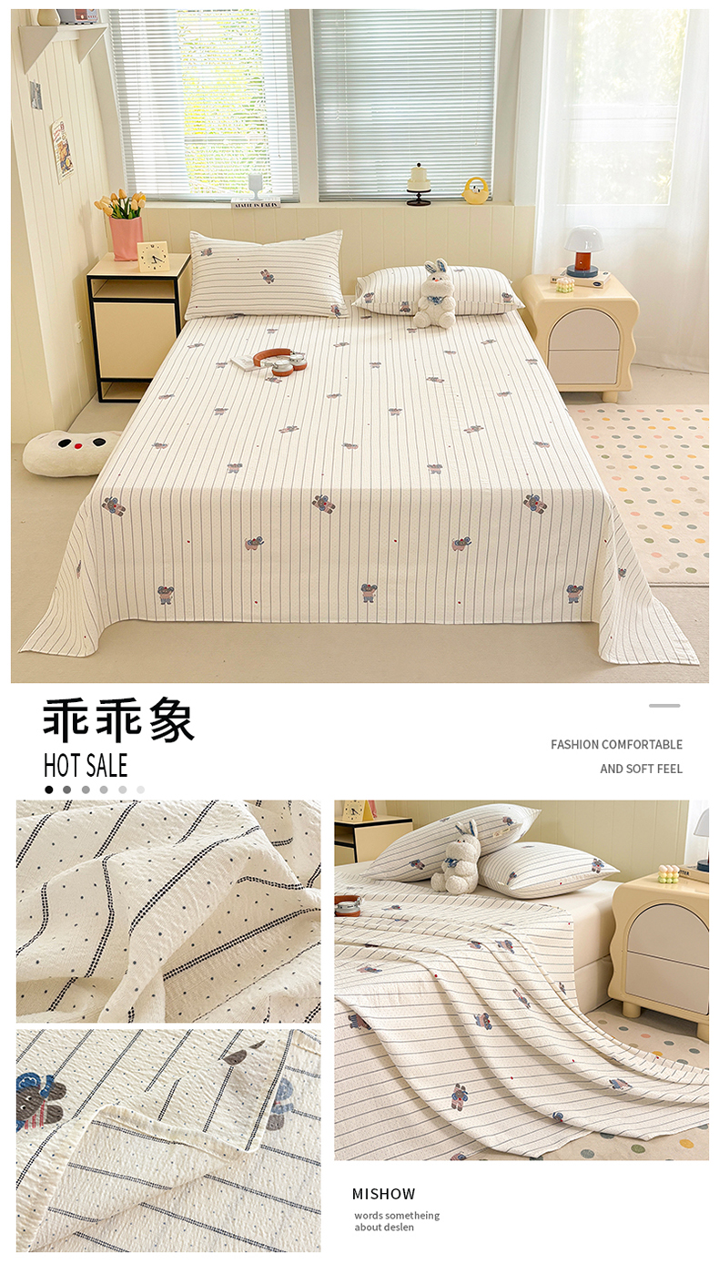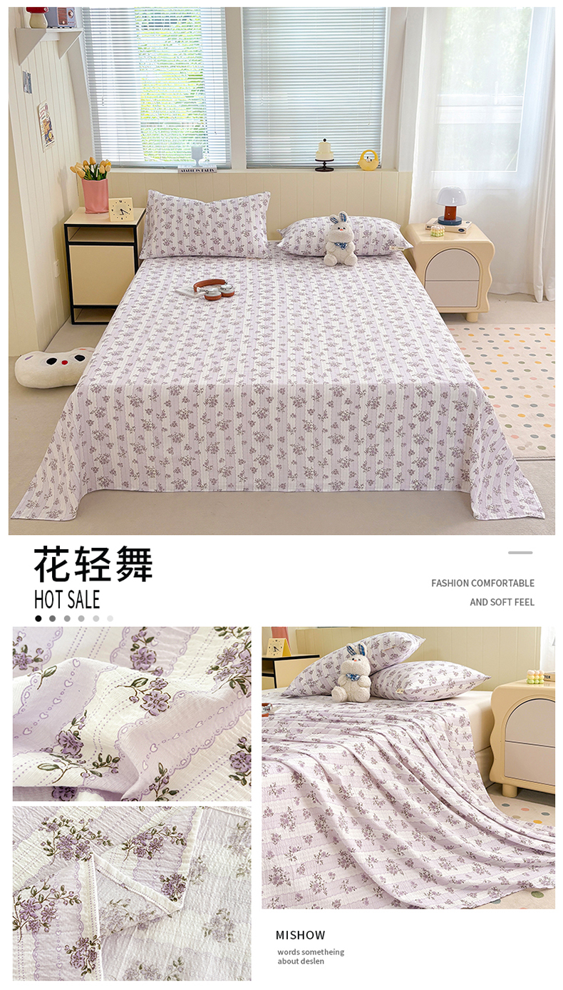 (总)青泽家纺 2025新款水洗棉皱皱纱双层纱床单三件套,芝士奶酪,半亩花田,田园女孩,疏影之心,南瓜派对,萌兔兔,萌宠乐园,梨花落,花园小兔,花间序语,海盐耶耶,乖乖象,格子小狗,豆蔻年华,花轻舞,半岛红茶
