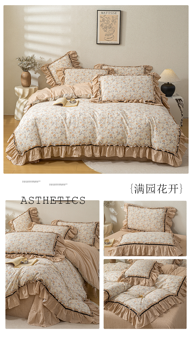 (总)大麦家纺 2025新款水洗亚麻花边四件套,粉黛佳人,风木槿咖,浮生花语,海棠花溪,花颜,锦瑟,满园花开,山花浪漫,颂青时,香榭花园,玉茗