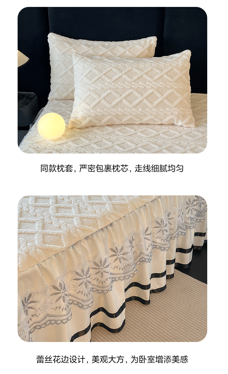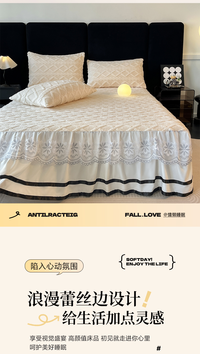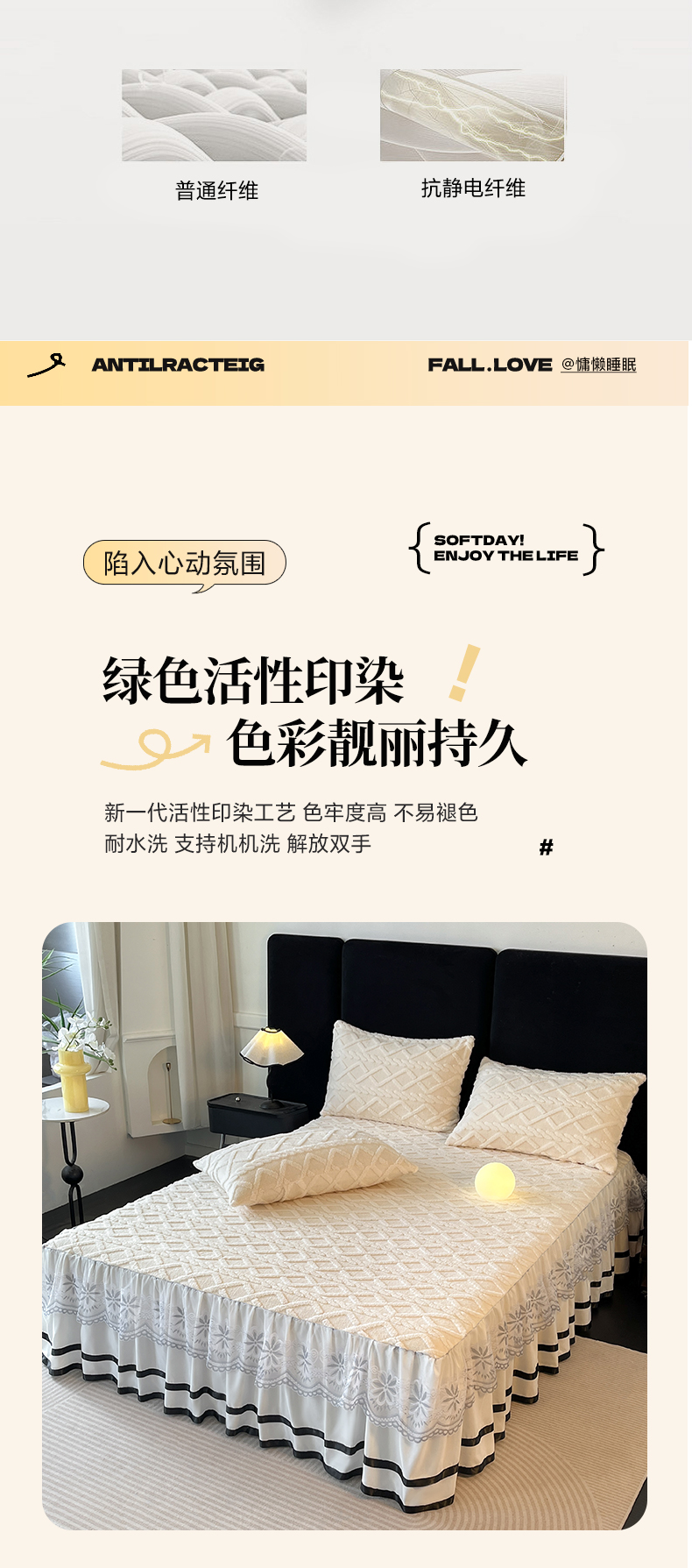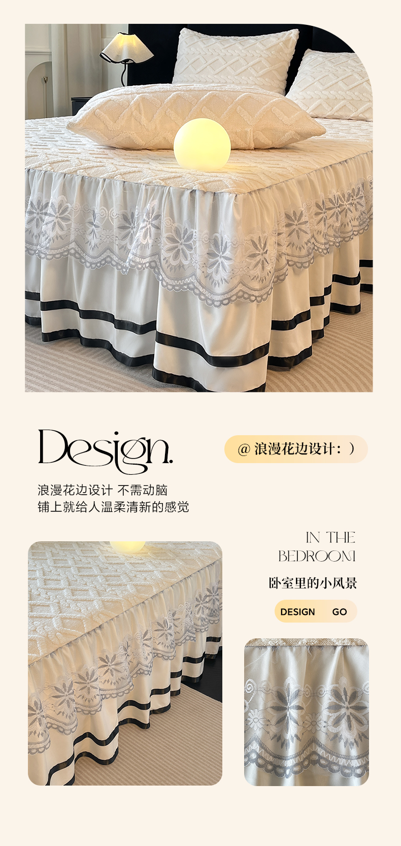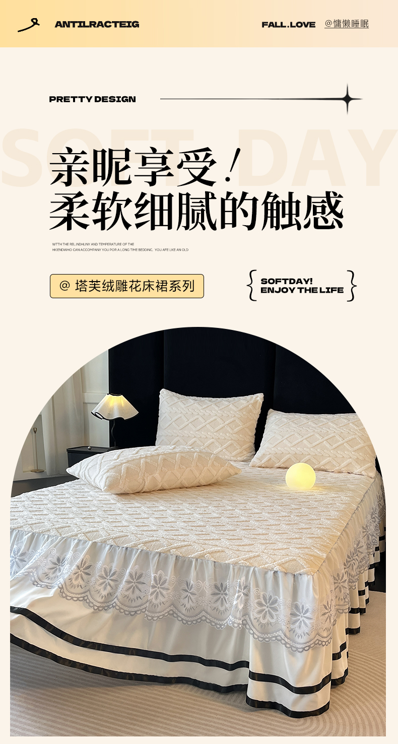• 91家纺网 家纺一手货源 找家纺 米瑞娜  2025新款塔芙绒雕花蕾丝床裙跨境外贸 白色