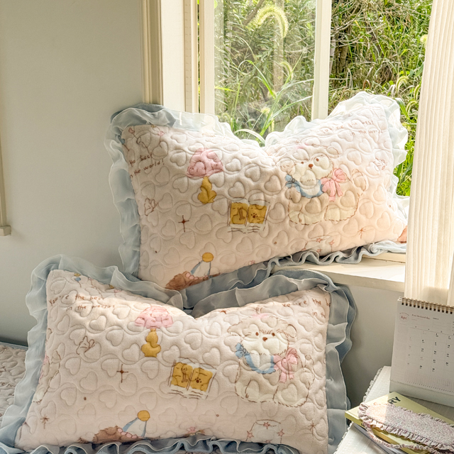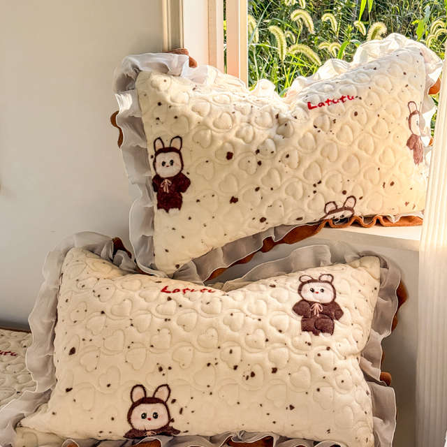 禧缘家纺(原梦想家) 2025新款夹棉双层花边牛奶绒枕套系列 布布乐园