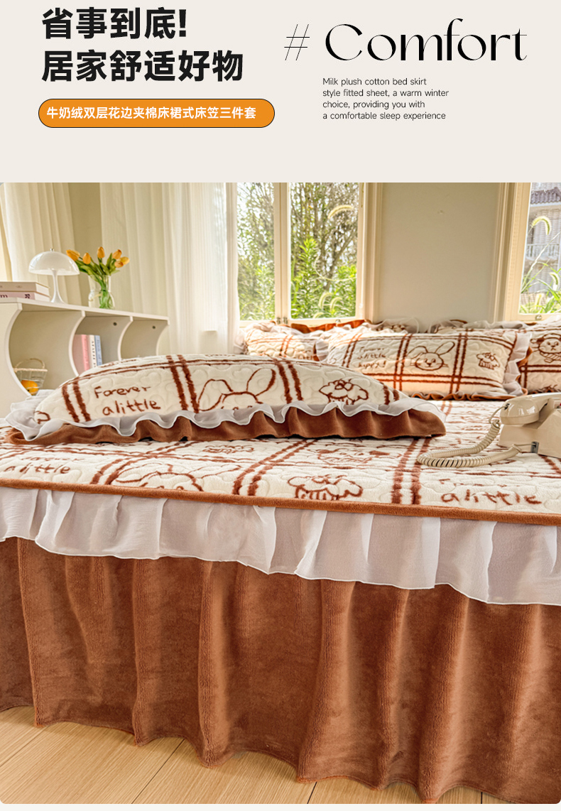 当前位置: 91家纺网 > 商品网购 > 床品套件 > 三件套 > 禧缘家纺(原梦想家) 2025新款夹棉双层花边牛奶绒床笠三件套系列 蓝铃风语