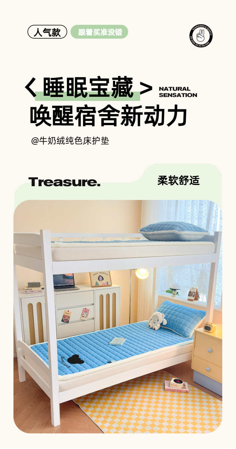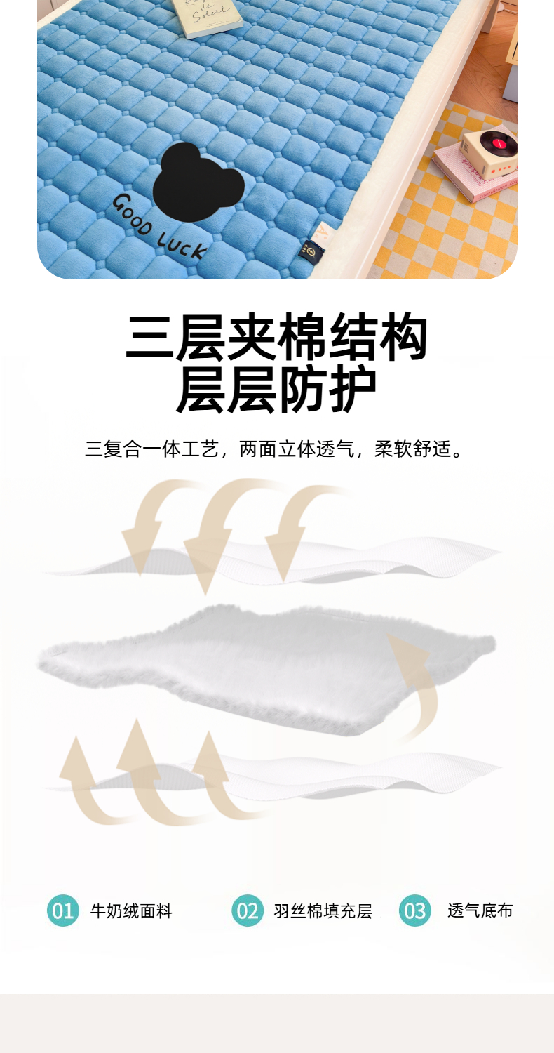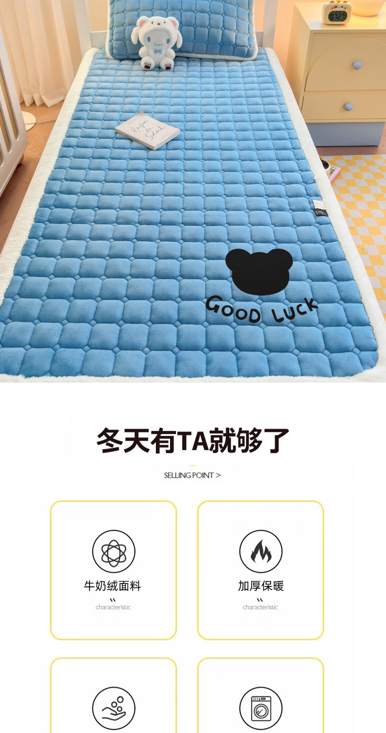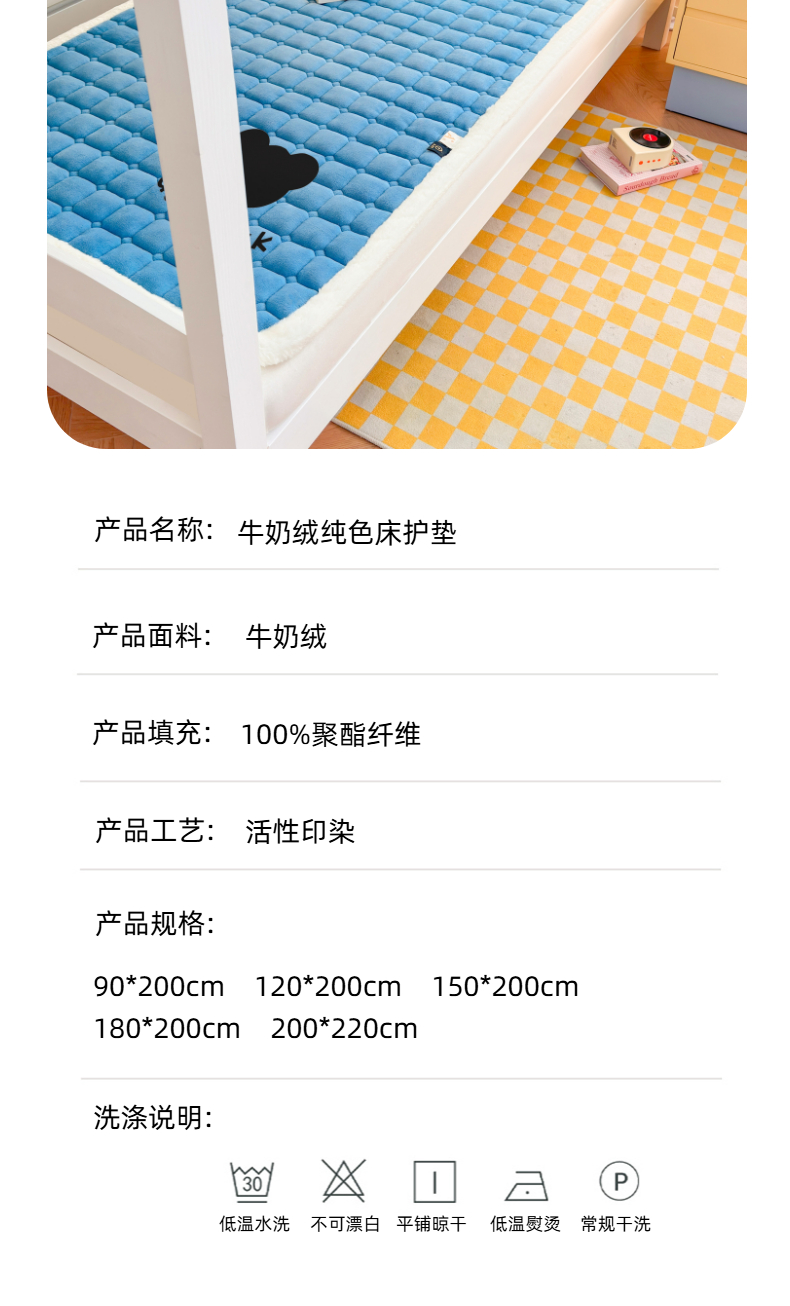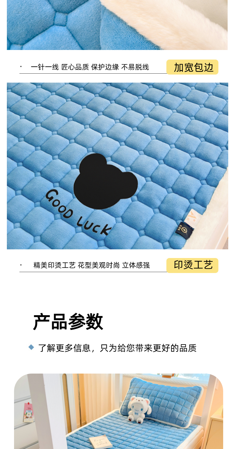当前位置: 91家纺网 > 商品网购 > 床垫/床褥 > 普通床垫 > 爱屋及屋 2025新款牛奶绒纯色床护垫-好运熊系列 海蓝