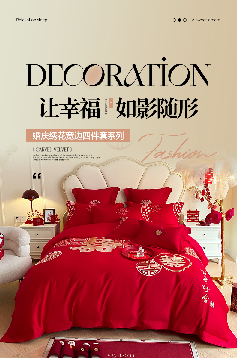 (总)博纳家纺 2025新款亲肤棉婚庆绣花款四件套,平安喜乐,百喜纳福,富贵传承,国色天香,欢天喜地,龙凤呈祥,龙凤大喜,玫瑰庄园,欧式风情,吾家大喜,喜爱,喜结连鲤,喜悦,一往情深