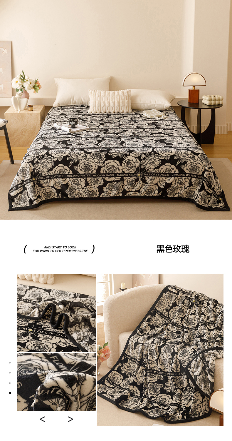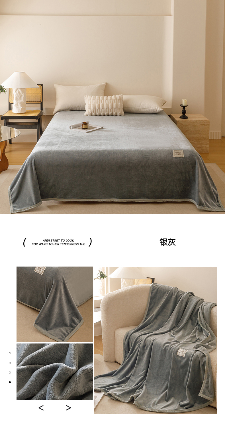 悦然毛巾被 2025新款300克印花牛奶绒盖毯休闲毯素色毛毯毯子 深灰