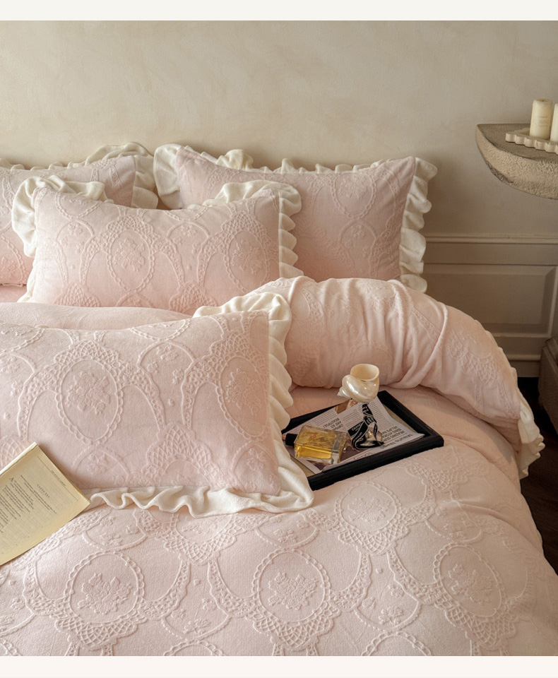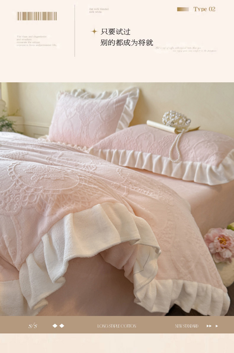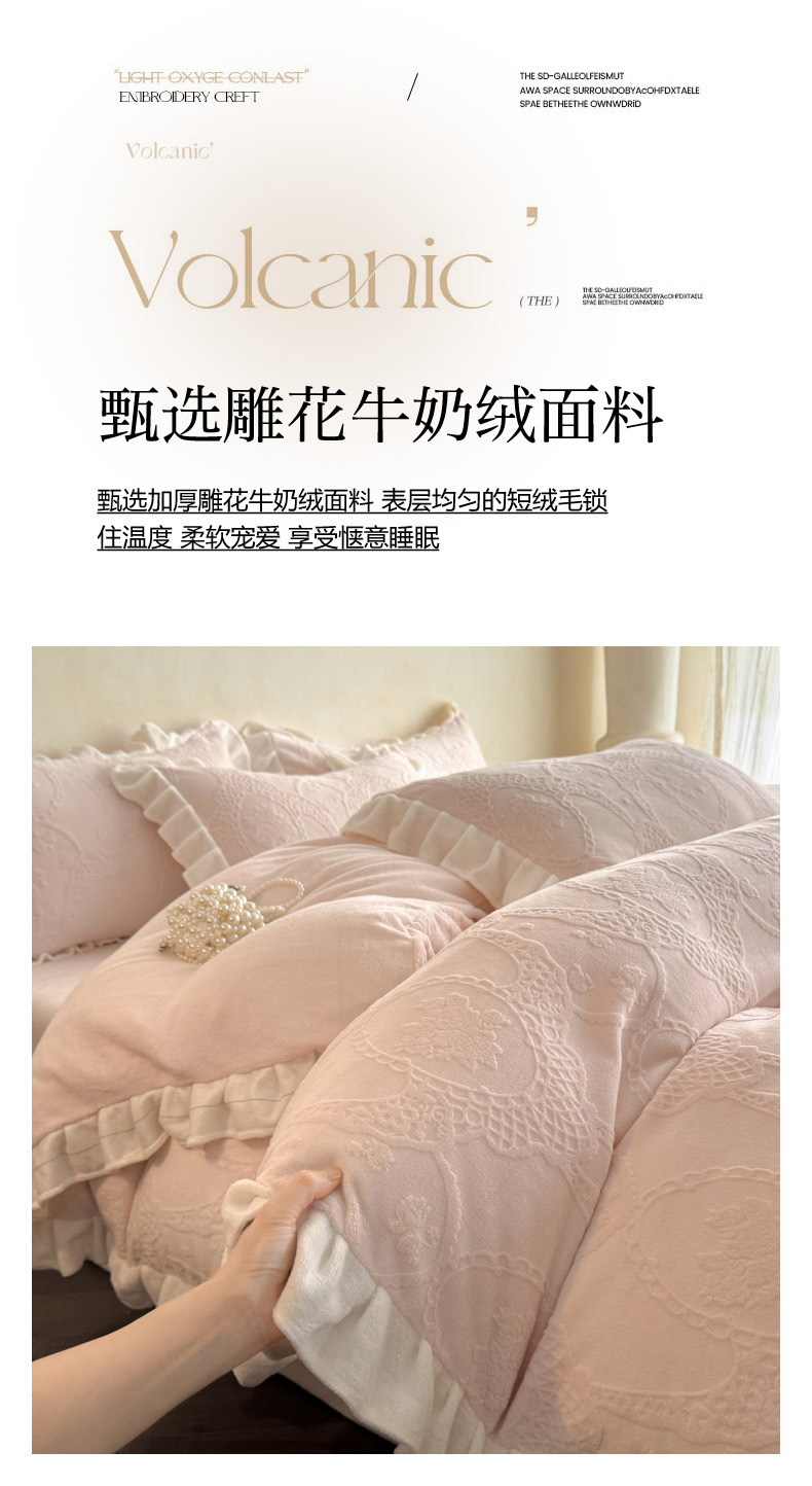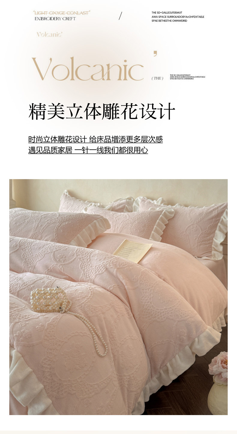 慕澄家纺 2025新款高克重牛奶绒花边款雕花四件套 安娜-甜粉