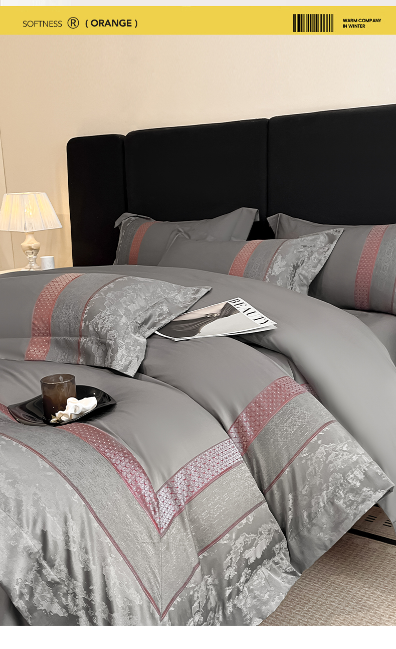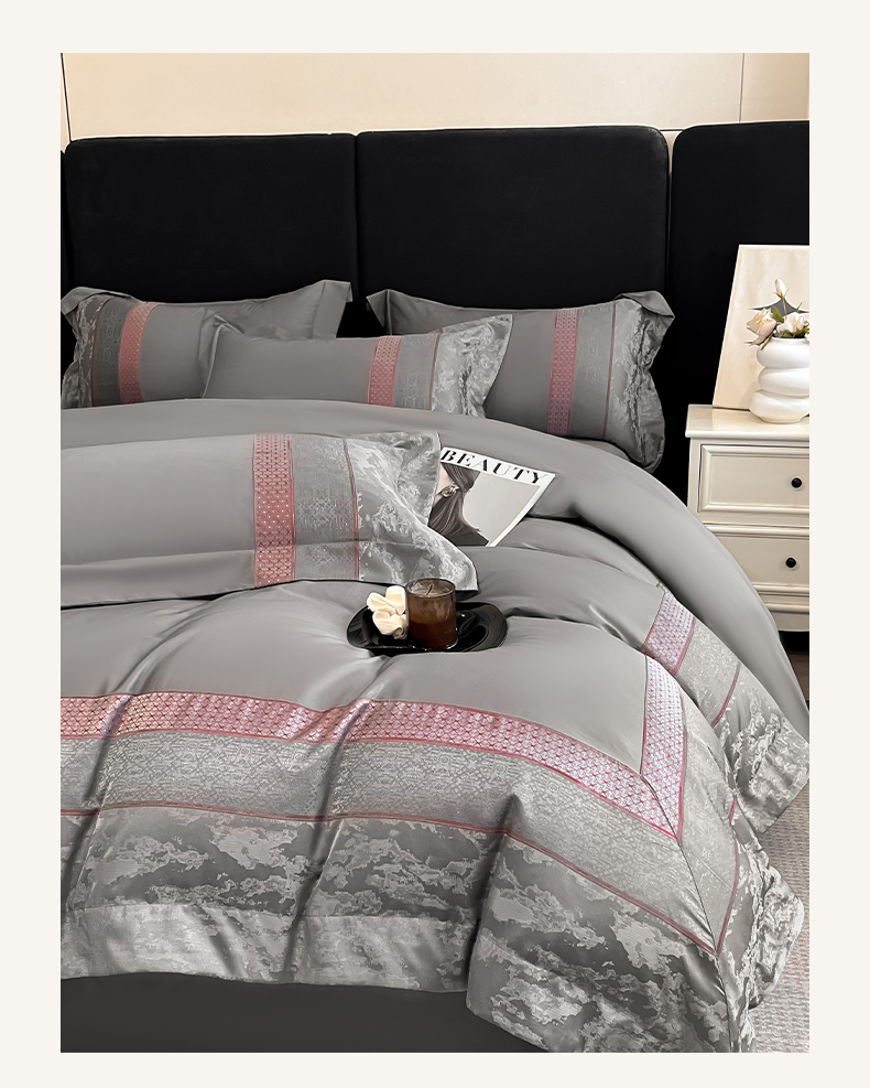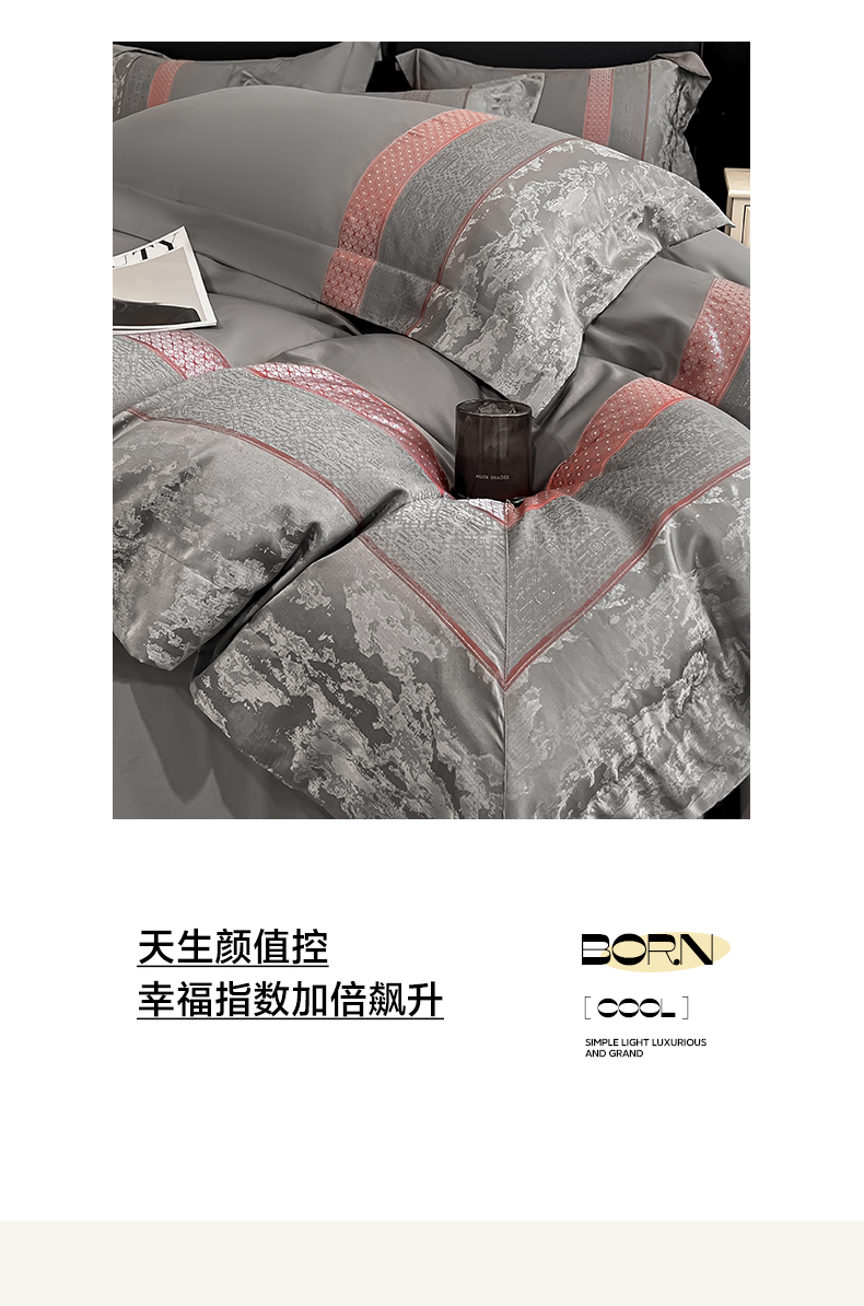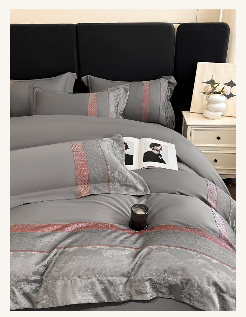 博纳家纺 2025新款多色色织提花宽边高级简奢款亲肤棉四件套-纸落云烟 纸落云烟-高级灰