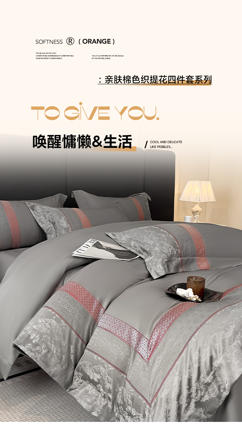 (总)博纳家纺 2025新款多色色织提花宽边高级简奢款纯棉四件套-山木花亭,山木花亭-繁星蓝,山木花亭-粉玉,山木花亭-绅士灰,山木花亭-香槟