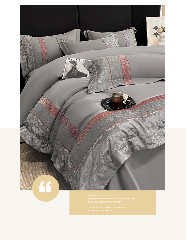 (总)博纳家纺 2025新款镂空大宽边拼角高级简奢款亲肤棉四件套-山水提花,繁星蓝,粉玉,高级灰,香槟,象牙白