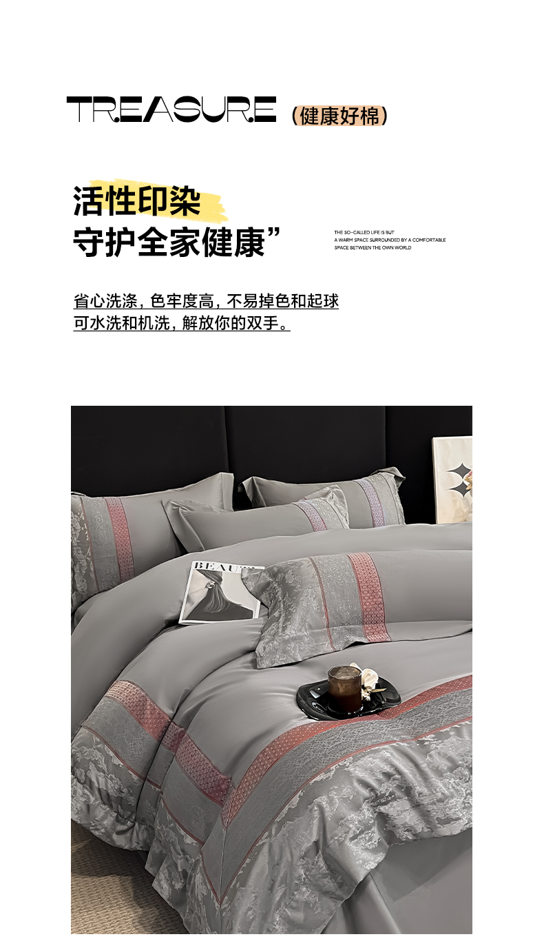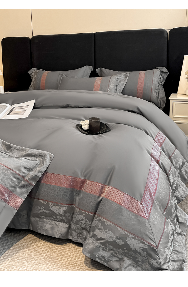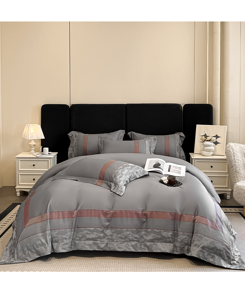 商品名称:博纳家纺 2025新款多色色织提花宽边高级简奢款亲肤棉四件套-纸落云烟 纸落云烟-高级灰