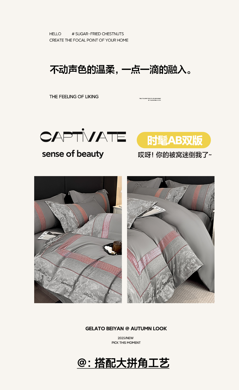 (总)博纳家纺 2025新款双色宽边高级简奢款四件套-维多利亚,高级灰,咖色,香槟,象牙白
