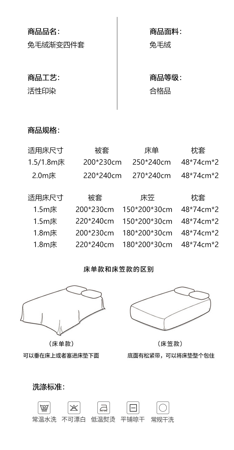 1.8m床笠款四件套被套220*240 | ¥130.00 |