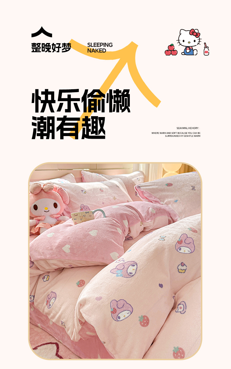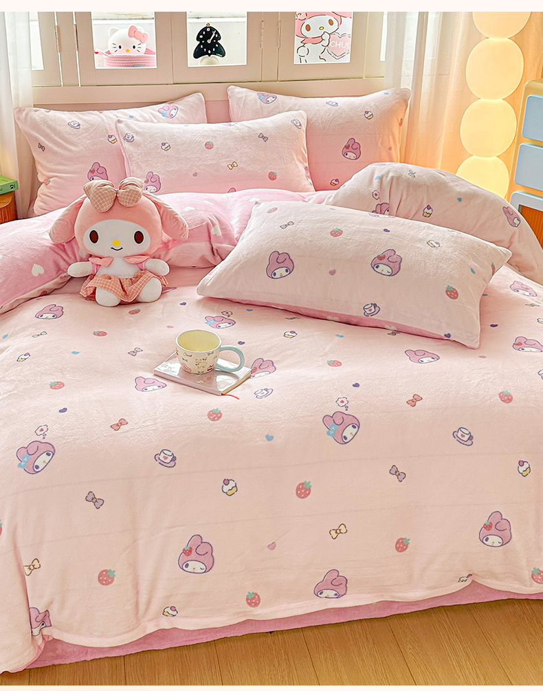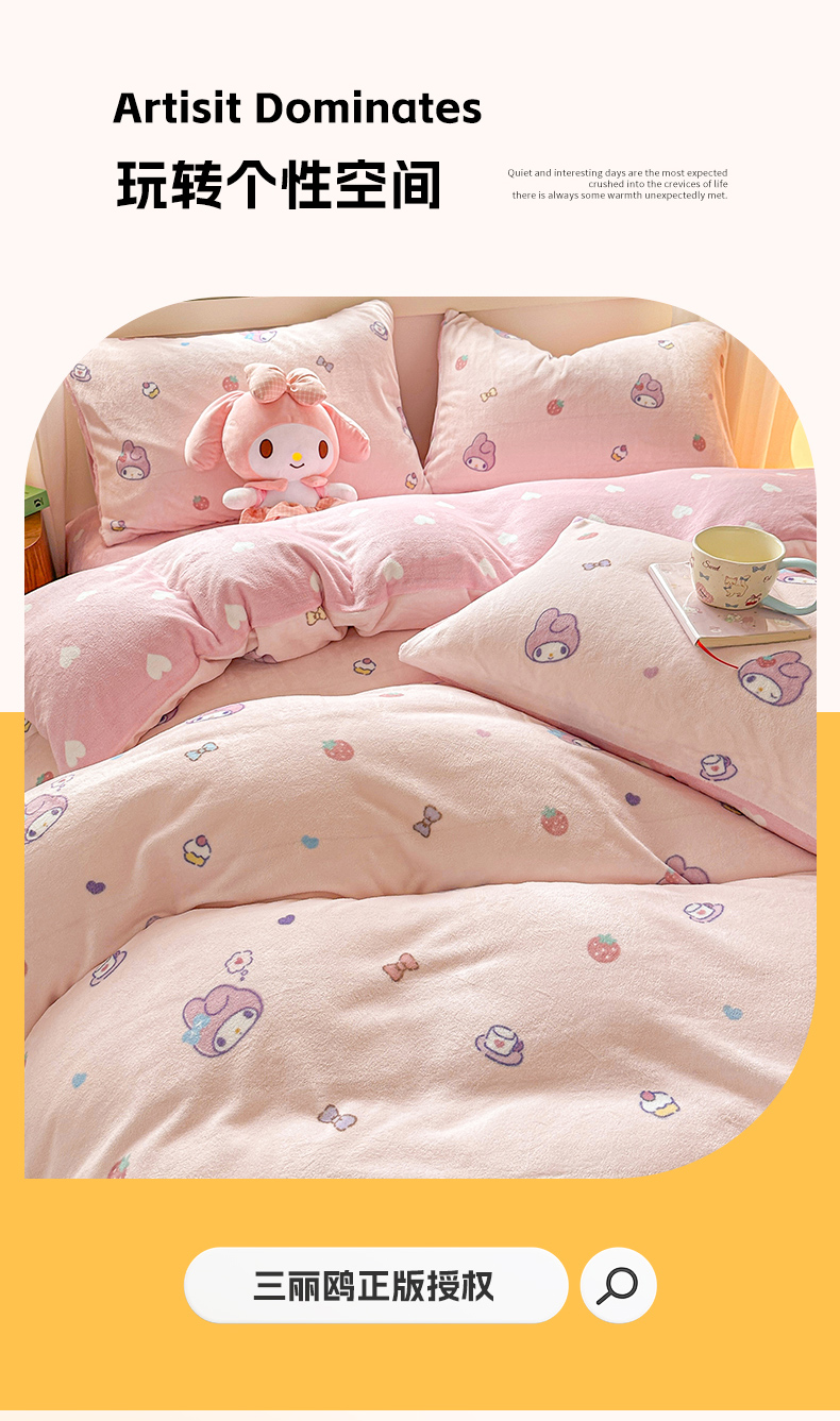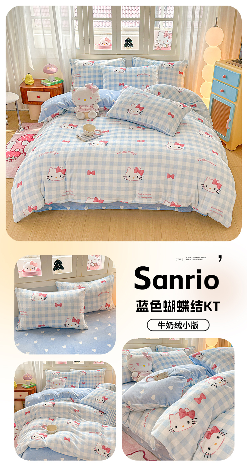 当前位置: 91家纺网 > 商品网购 > 床品套件 > 四件套 > 牛奶绒四件套 > 博雅 2025新款三丽鸥正版授权高克重牛奶绒小版四件套提供买家秀 牛奶绒小版-蝴蝶结KT