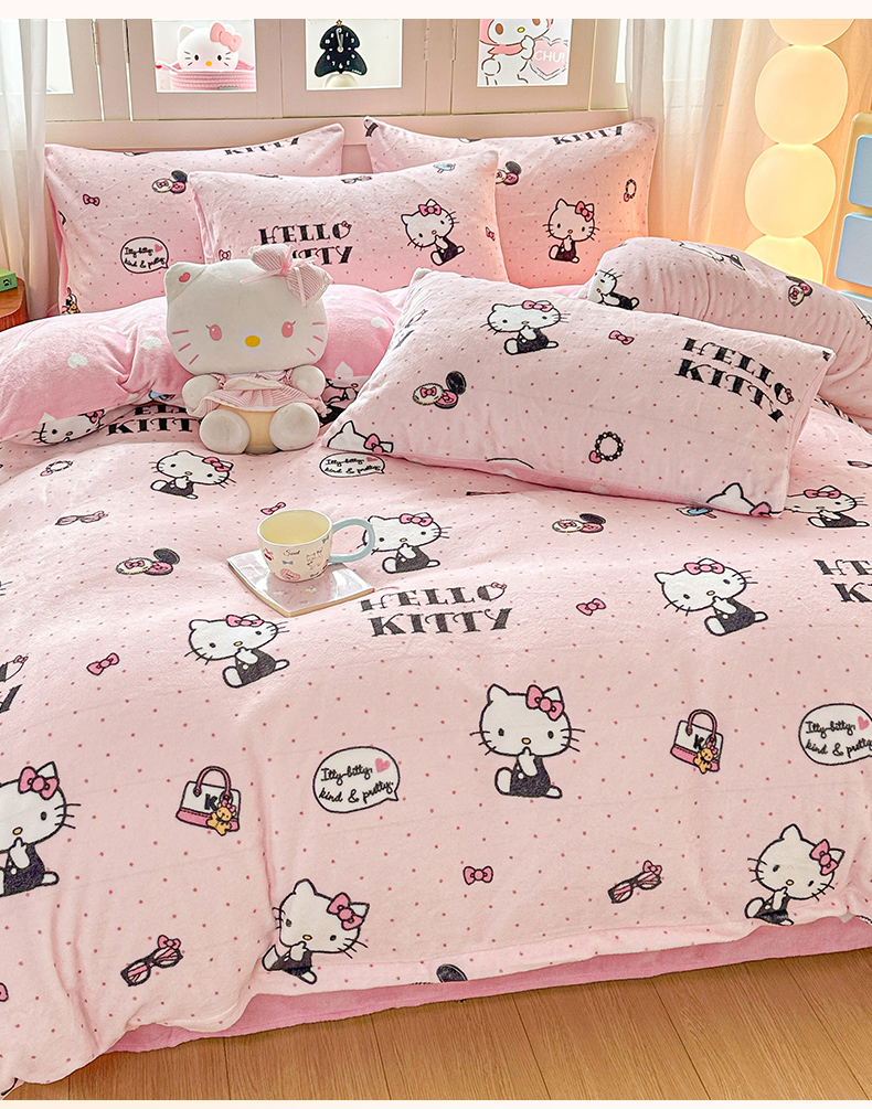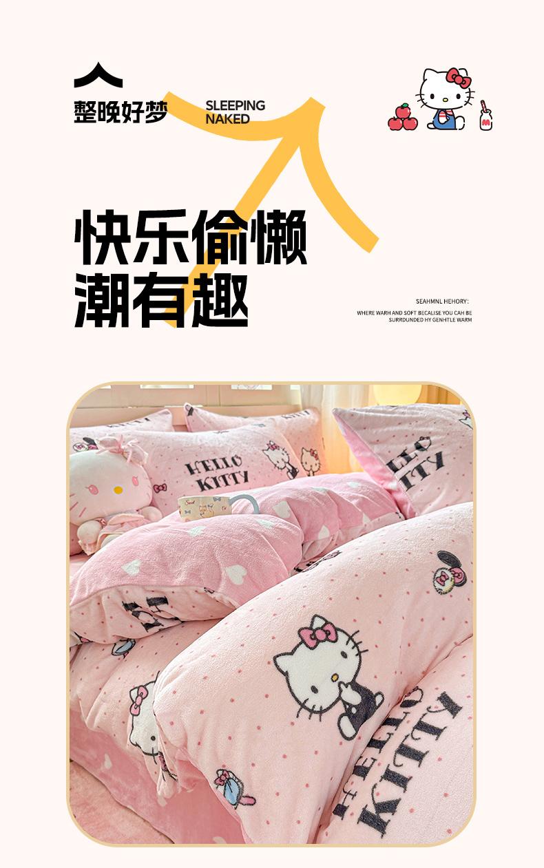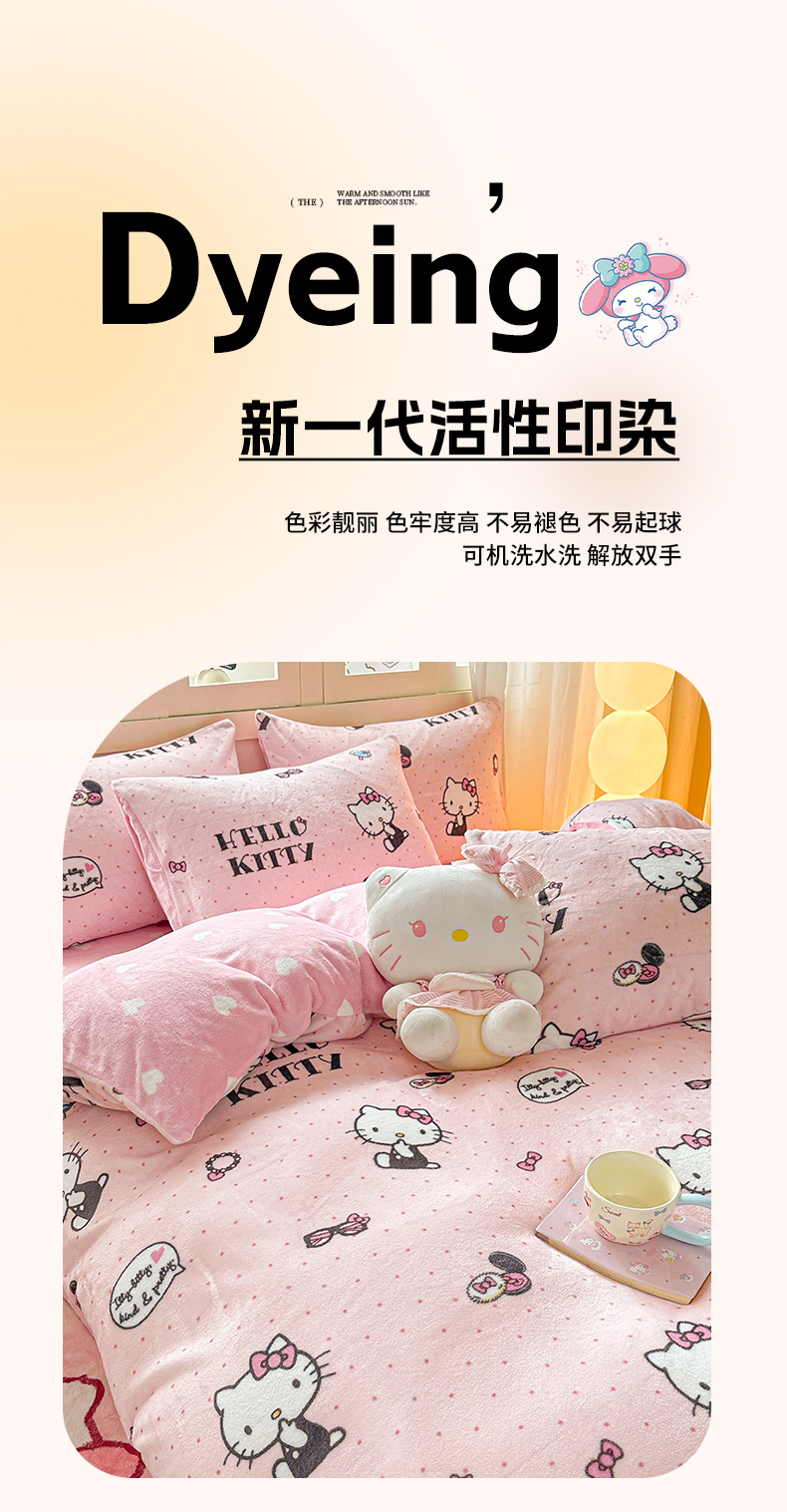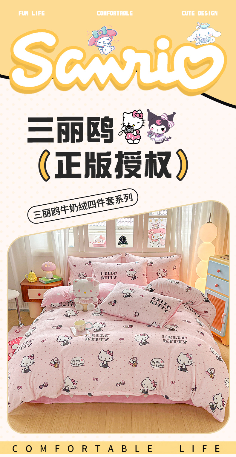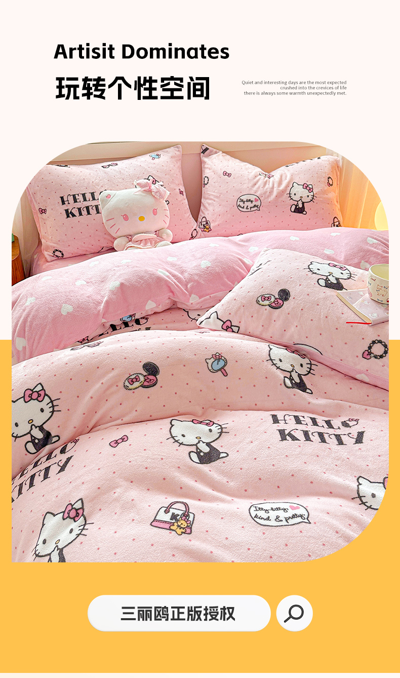当前位置: 91家纺网 > 商品网购 > 床品套件 > 四件套 > 牛奶绒四件套 > 博雅 2025新款三丽鸥正版授权高克重牛奶绒小版四件套提供买家秀 牛奶绒小版-美妆KT猫