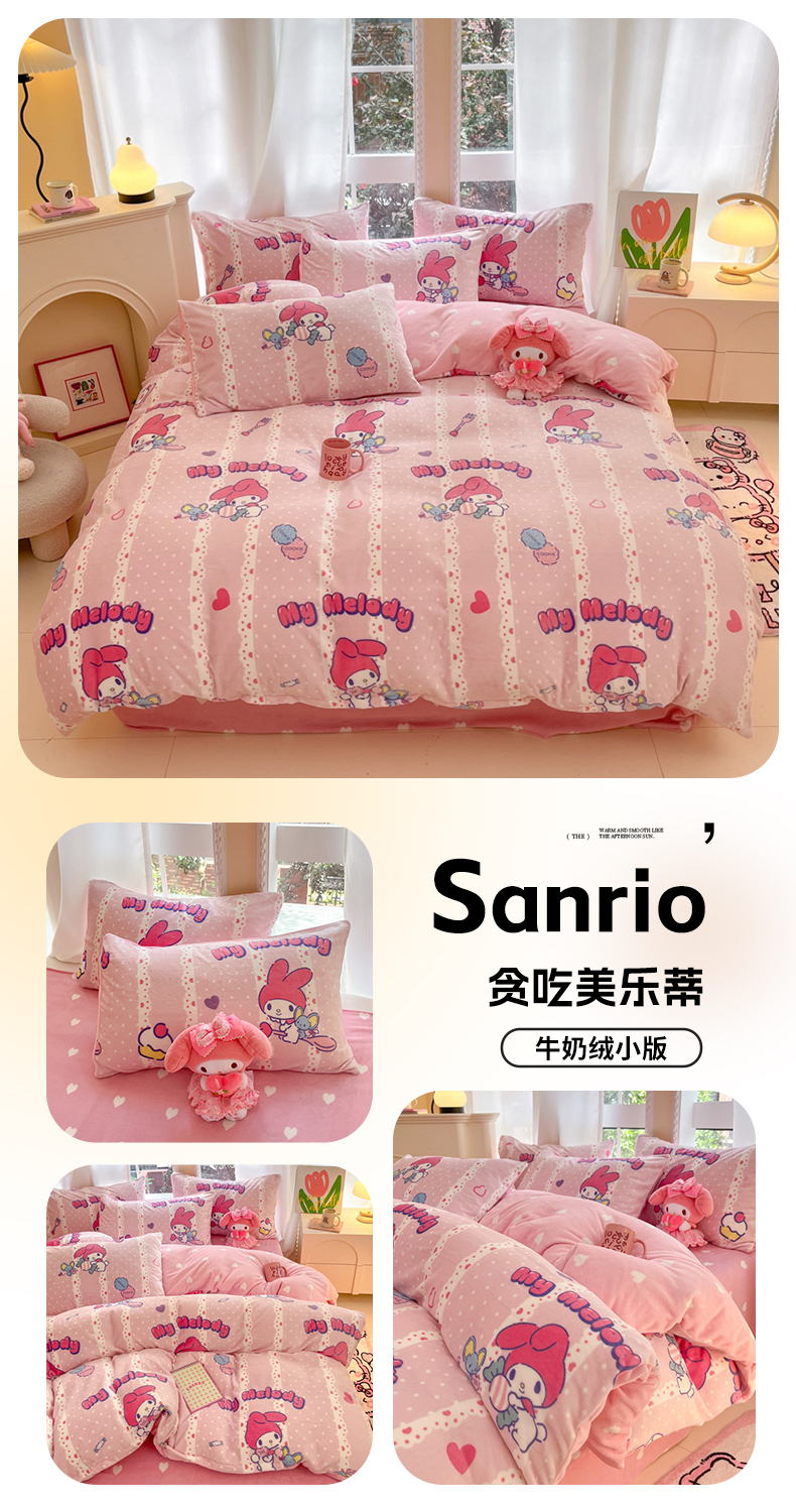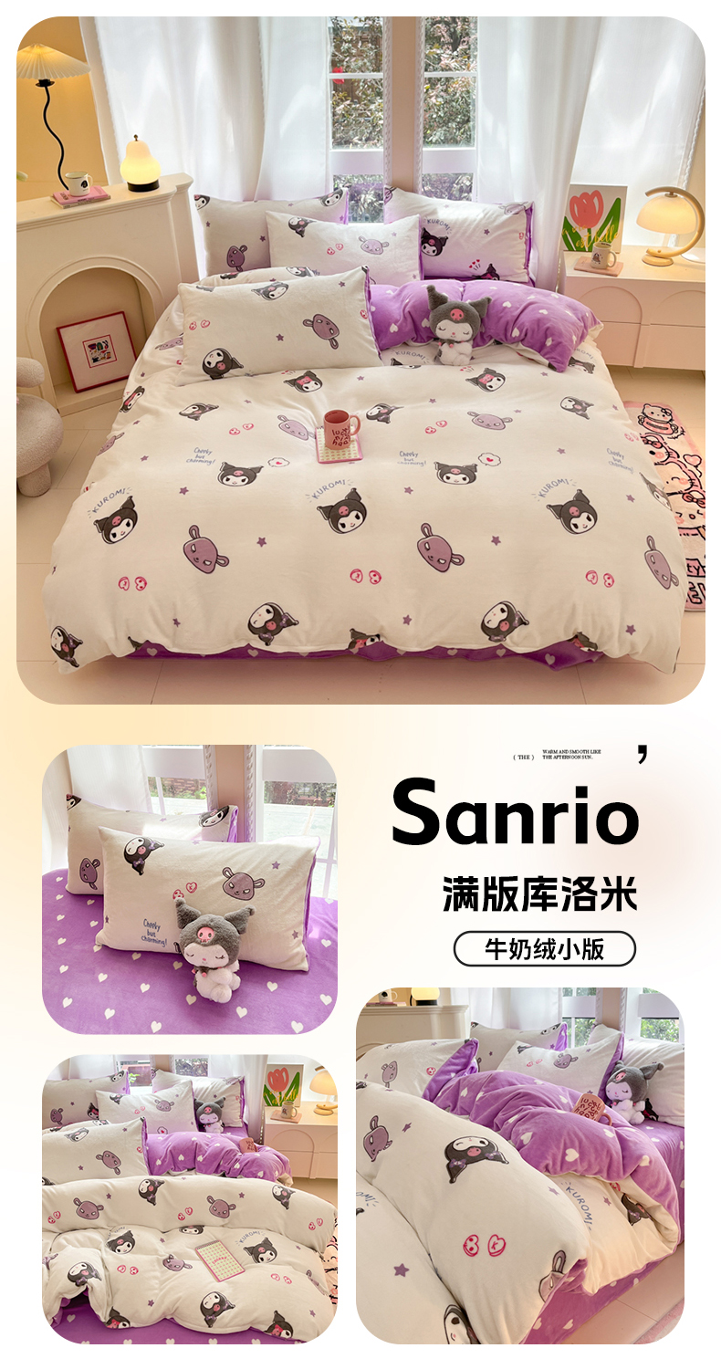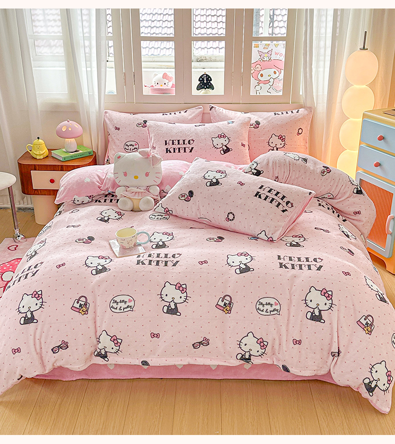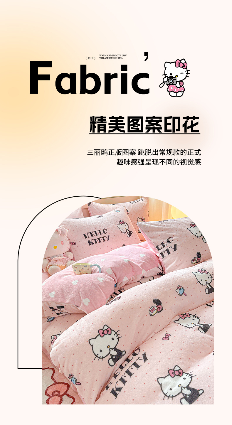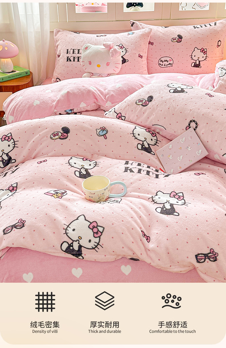 当前位置: 91家纺网 > 商品网购 > 床品套件 > 四件套 > 牛奶绒四件套 > 博雅 2025新款三丽鸥正版授权高克重牛奶绒小版四件套提供买家秀 牛奶绒小版-美妆KT猫