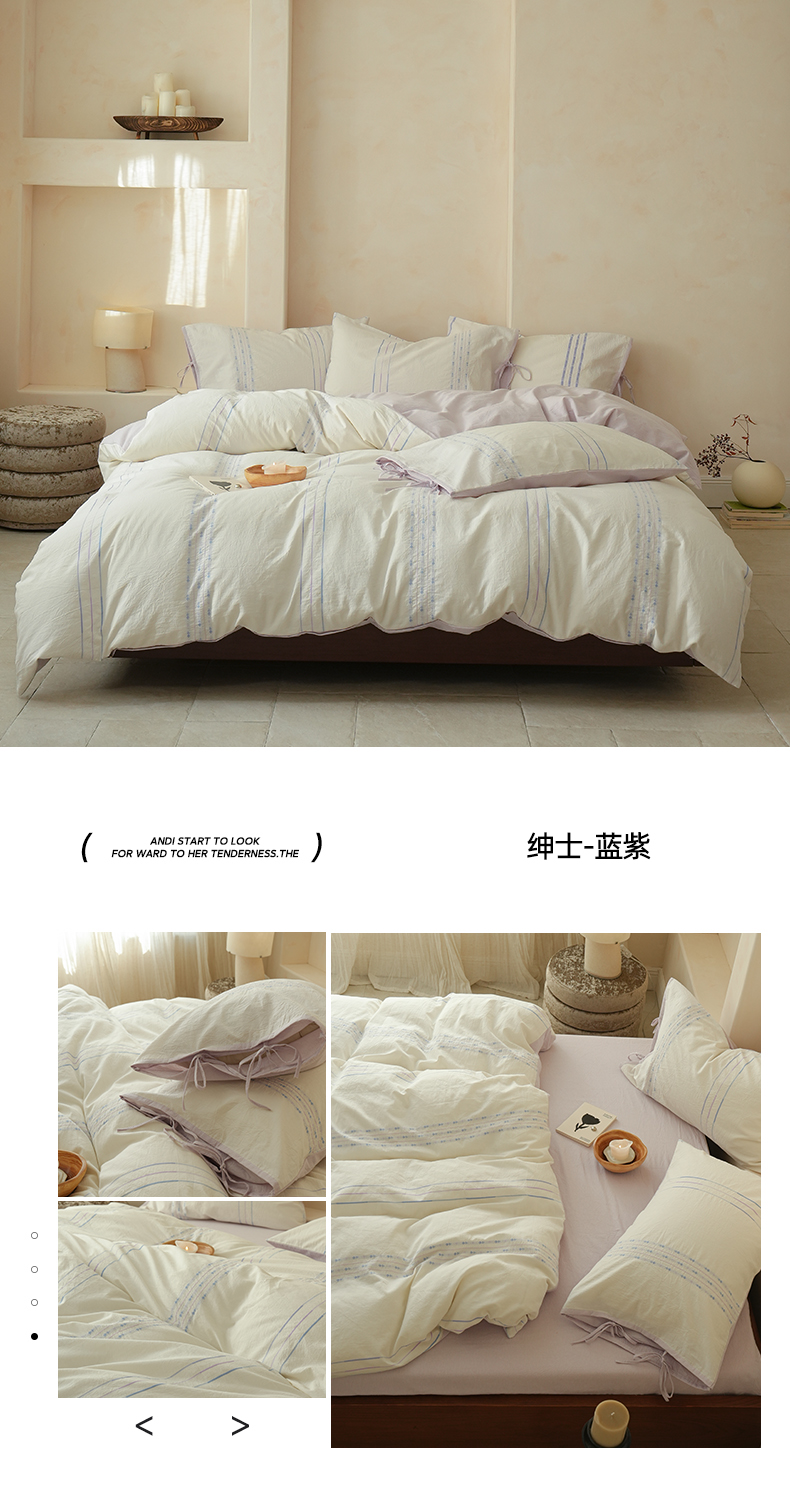寐居家纺 2025新款全棉A类60支水洗色织提花剪花四件套 阿尔玛-蓝