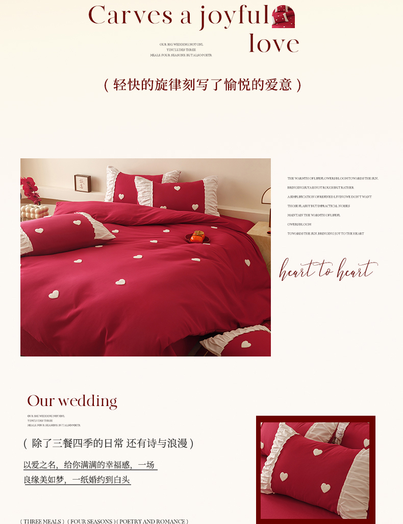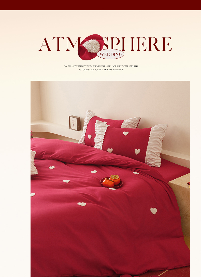(总)苏源家居 2026 新款简单婚庆大红小logo刺绣结婚四件套,coco小姐,甜蜜蜜