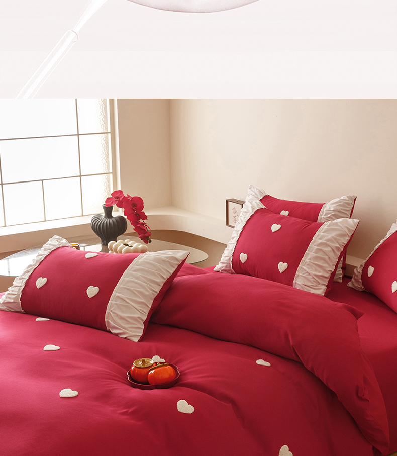 商品名称:苏源家居 2025新款小爱心买家秀婚庆刺绣大红结婚四件套 心心相印-白