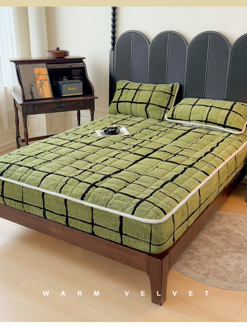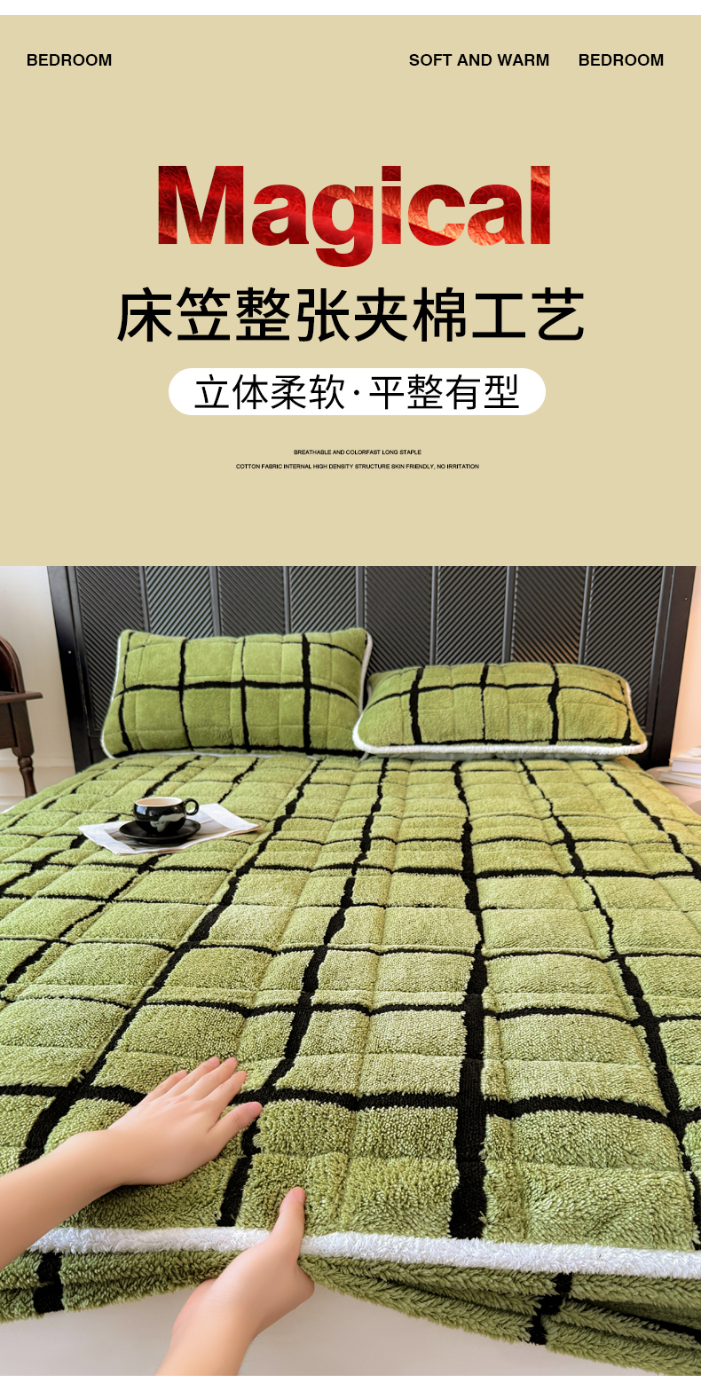 LIFE.丽芙 2025秋冬新款色纱提花舒棉绒加厚夹棉单床笠款床垫子保护套保暖床罩子三件套 格调-草绿