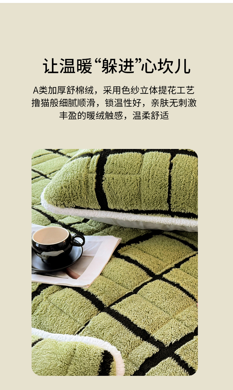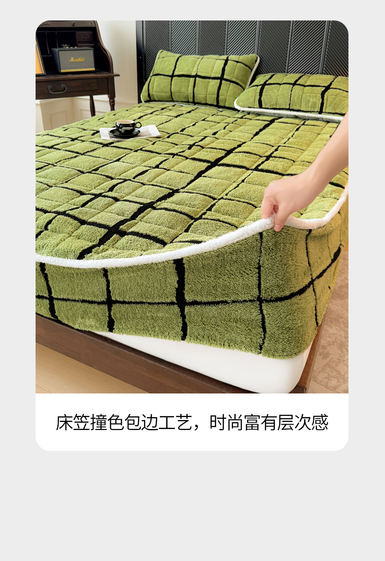 • 91家纺网 家纺一手货源 找家纺 LIFE.丽芙 2025秋冬新款色纱提花舒棉绒加厚夹棉单床笠款床垫子保护套保暖床罩子三件套 格调-草绿