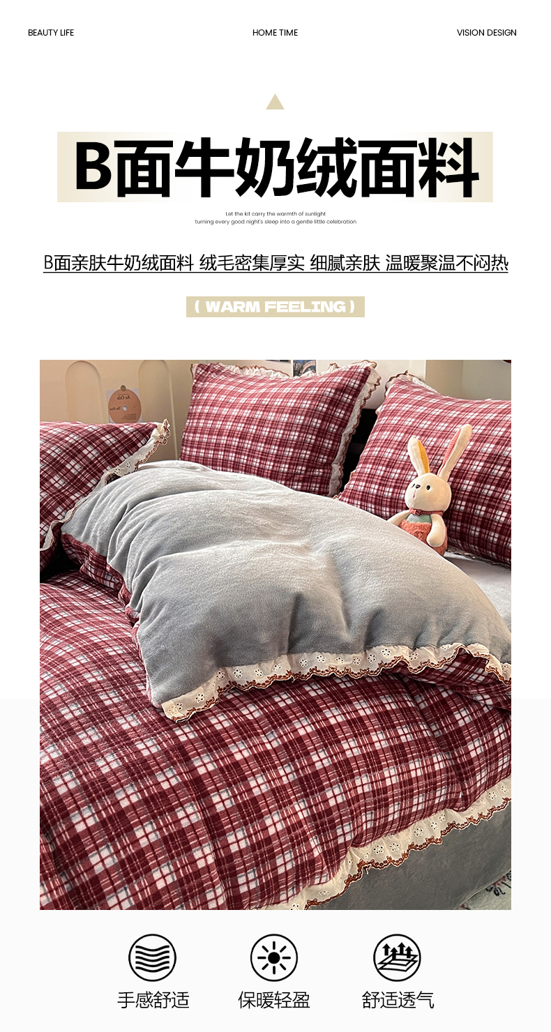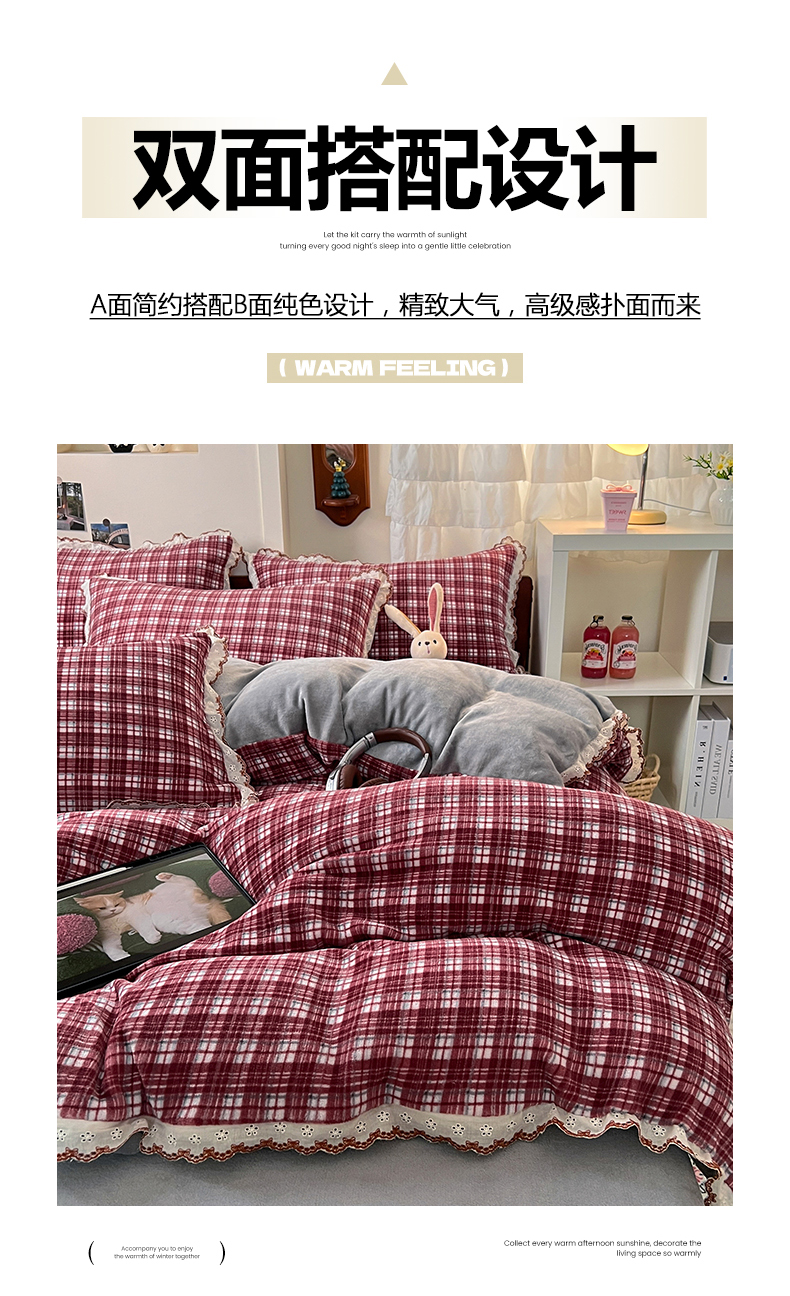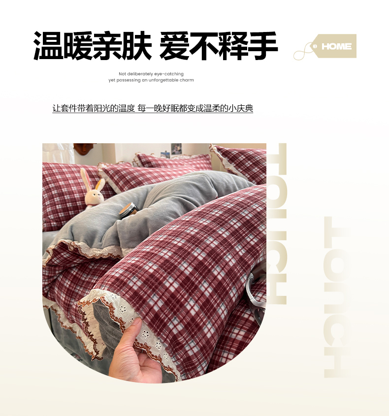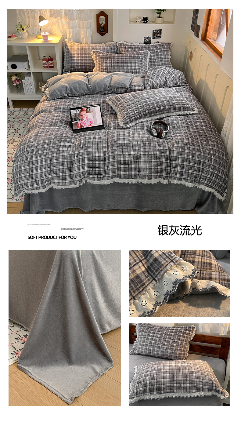 当前位置: 91家纺网 > 商品网购 > 床品套件 > 四件套 > 牛奶绒四件套 > 妖妖家纺 2025新款加厚全棉花边牛奶绒格子四件套 醋莓浆果