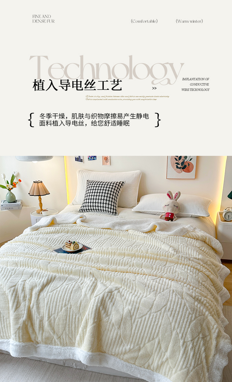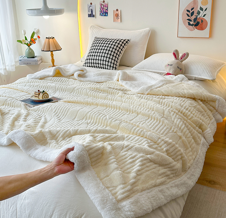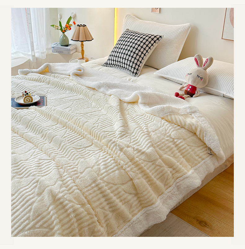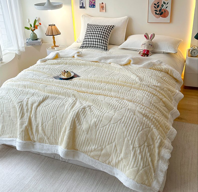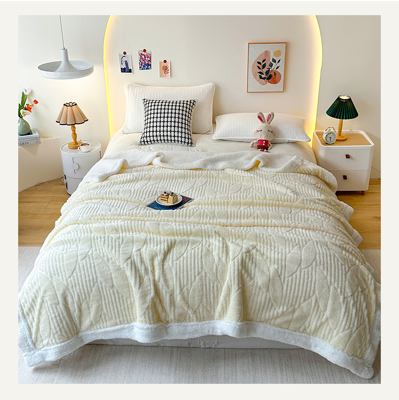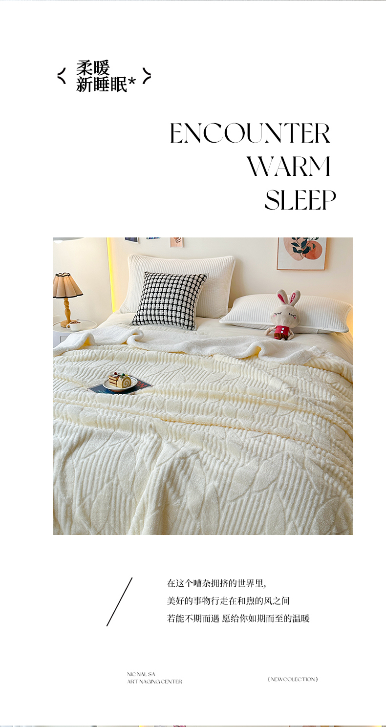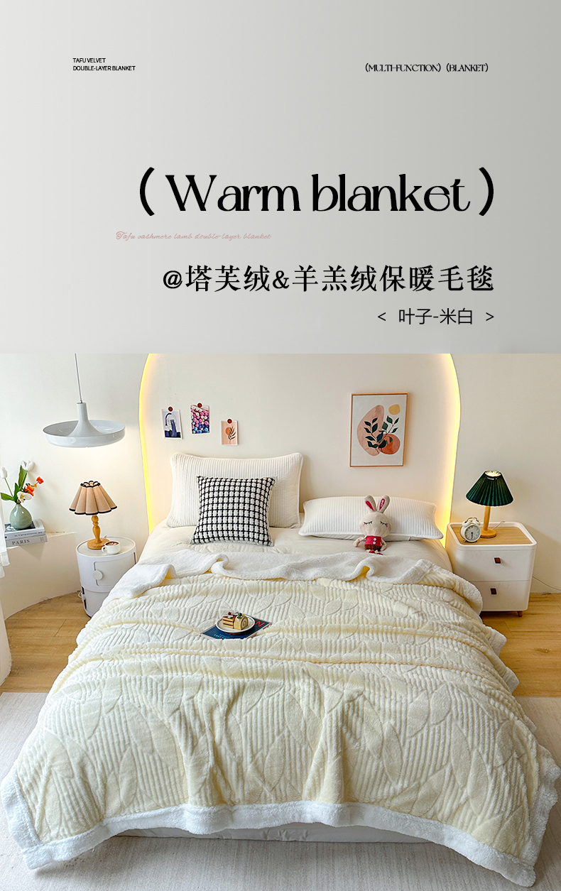 悦织湾家纺 2025新款塔芙绒羊羔绒舒棉绒毛毯叶子系列 叶子米白