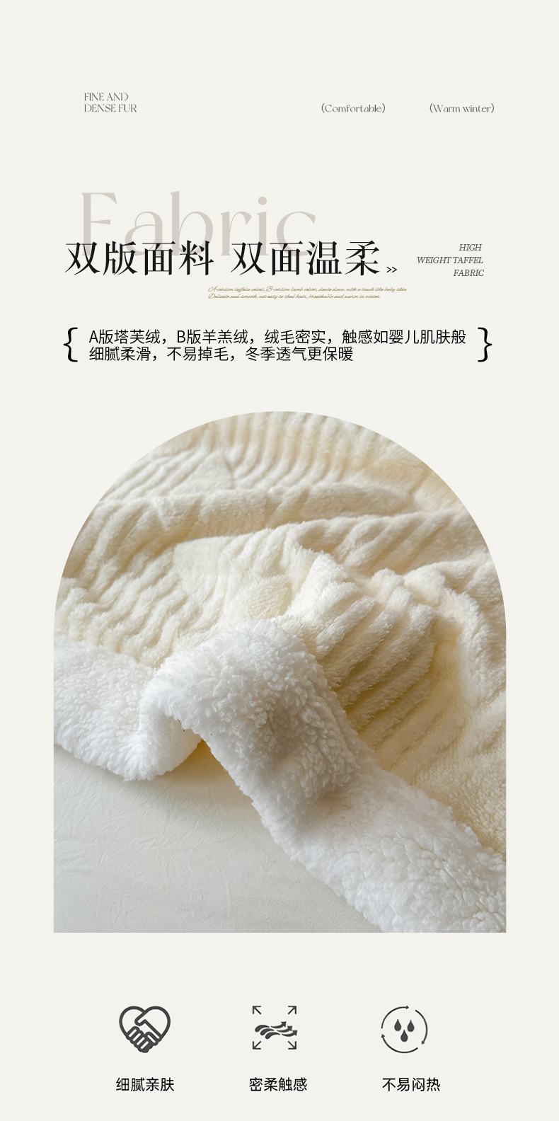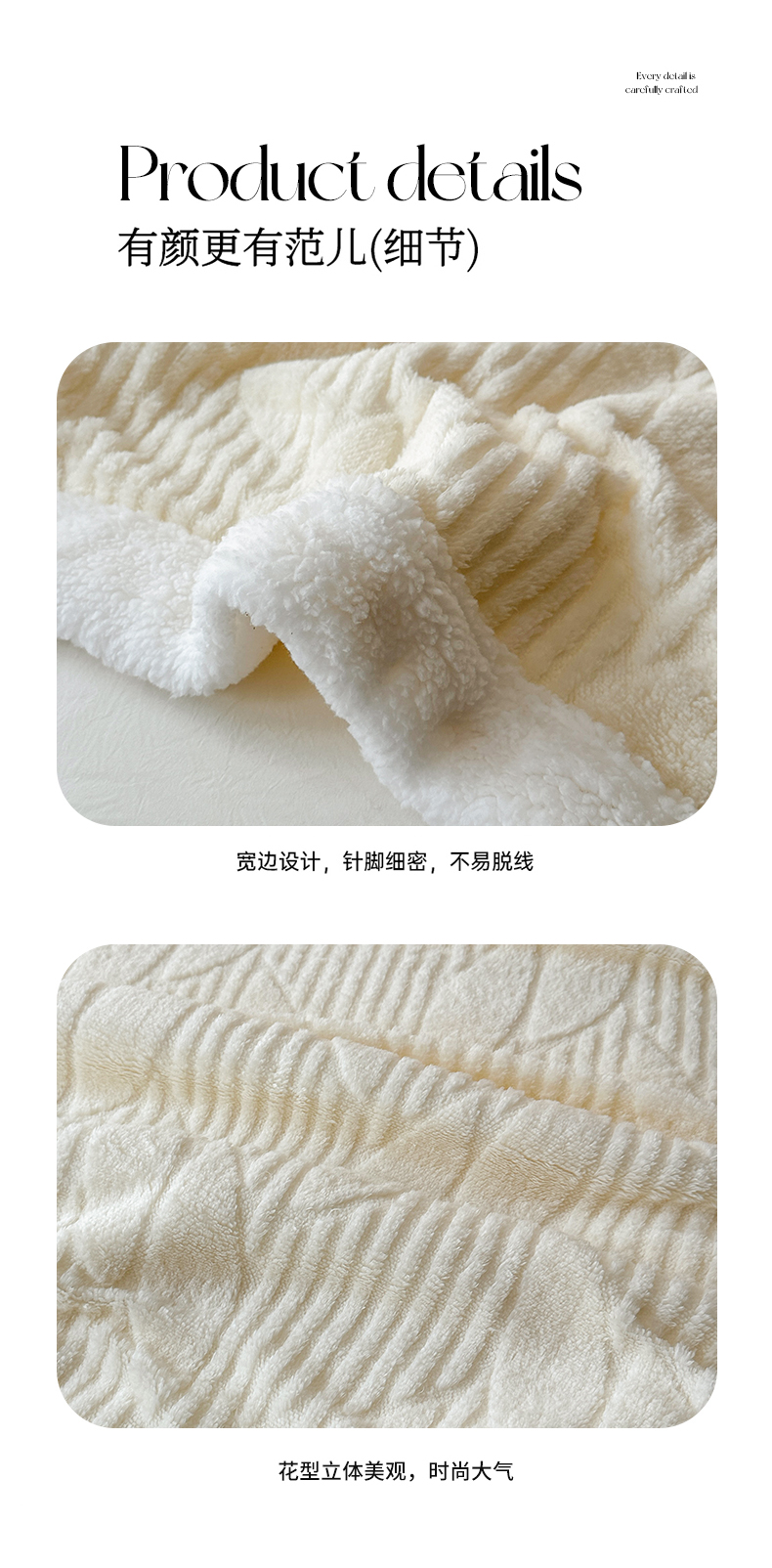 商品名称:悦织湾家纺 2025新款塔芙绒羊羔绒舒棉绒毛毯叶子系列 叶子米白