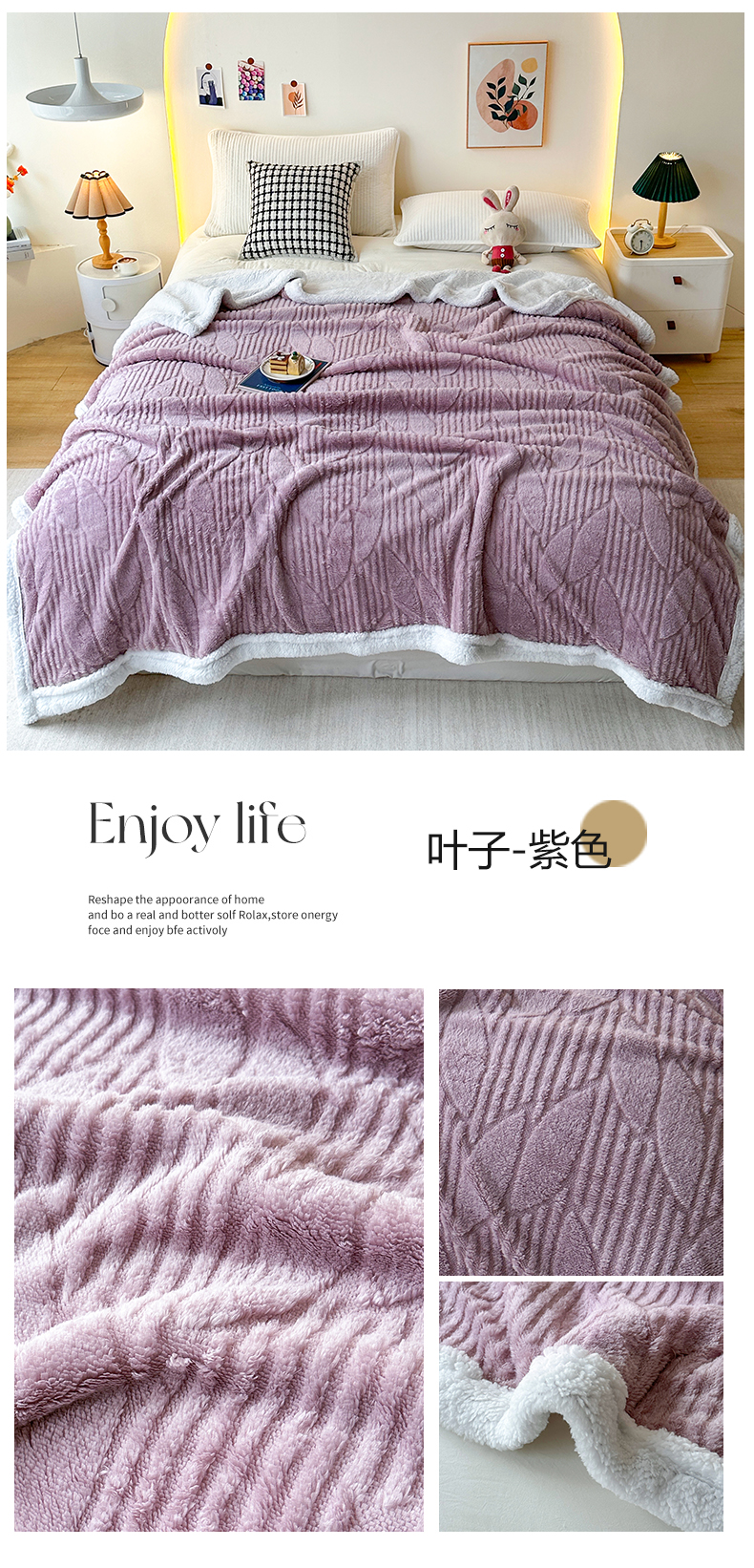 (总)悦织湾家纺 2025炫彩仿兔毛绒泡泡绒牛奶绒法兰绒毛毯休闲毯沙发盖毯跨境外贸出口专供,炫彩粉,炫彩灰,炫彩咖,炫彩绿,炫彩紫