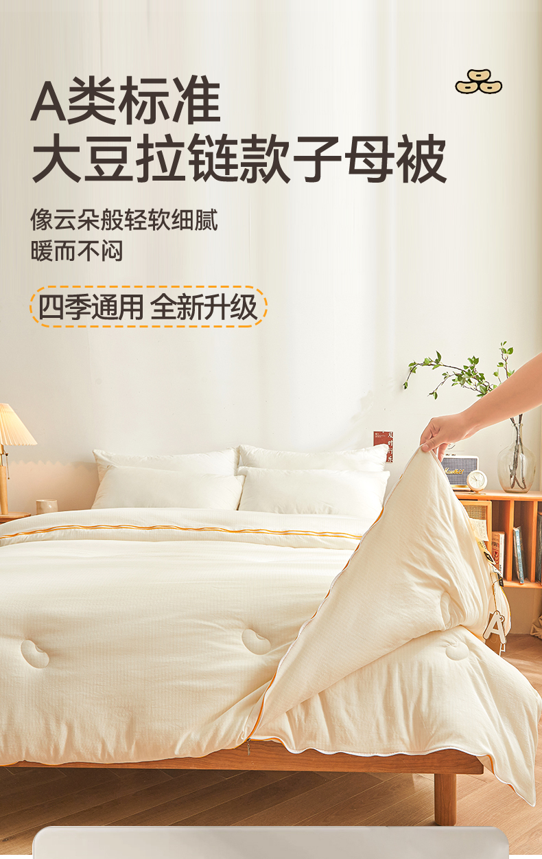 商品名称:梵蒂莎 【可检测】2025新款130克拉链子母被子被芯二合一(撞色款) 白色+白色