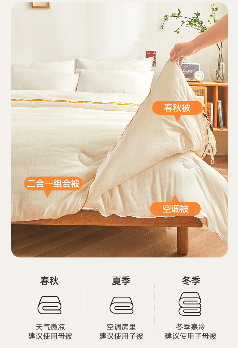 (总)梵蒂莎 2025新款可拆卸棉花被(场景1),浅海絮格,粉棕格笺,海盐小格,浅绿格影,素格灰调,素格晴蓝,雾蓝灰格,棕格漫调