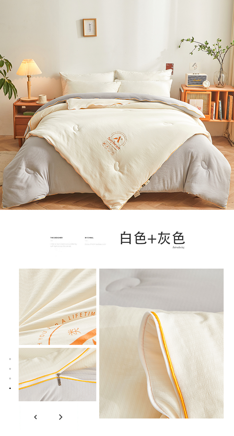 (总)梵蒂莎 【可检测】2025新款130克拉链子母被子被芯二合一(撞色款),白色+白色,白色+粉玉,白色+灰色