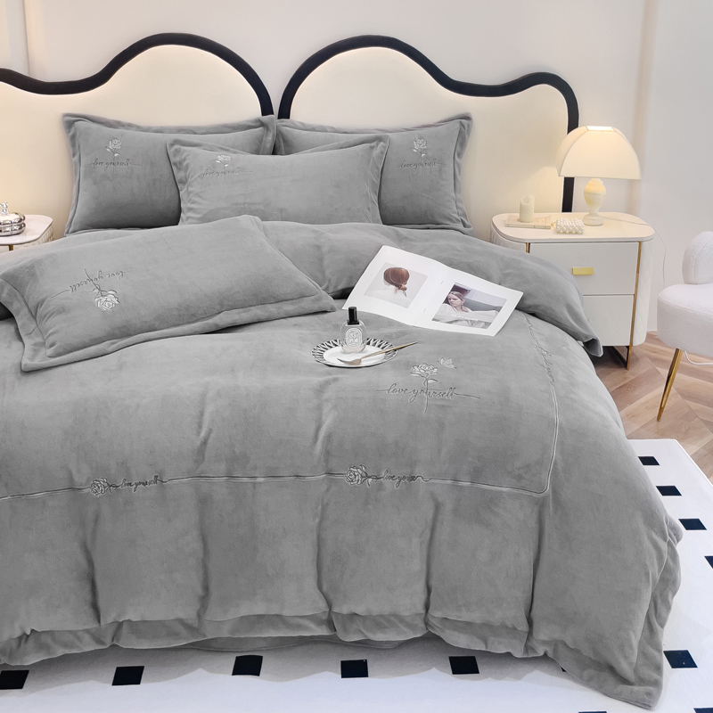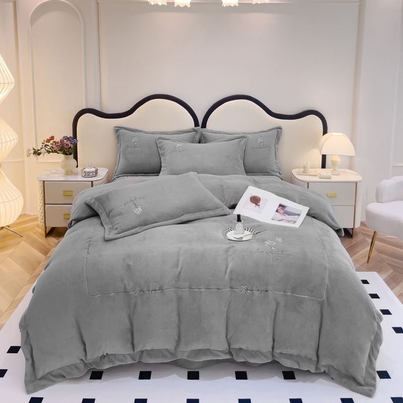 (总)梵克保罗 2024新款加厚肌理纹碳素磨毛刺绣四件套,宾利兰,典雅灰,丁香紫,豆沙粉,复古绿,浪漫粉