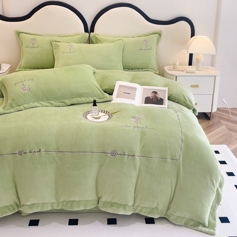 梵克保罗 2025秋冬新款高克重牛奶绒轻奢花卉绣花刺绣-玫瑰庄园 玫瑰庄园-绿