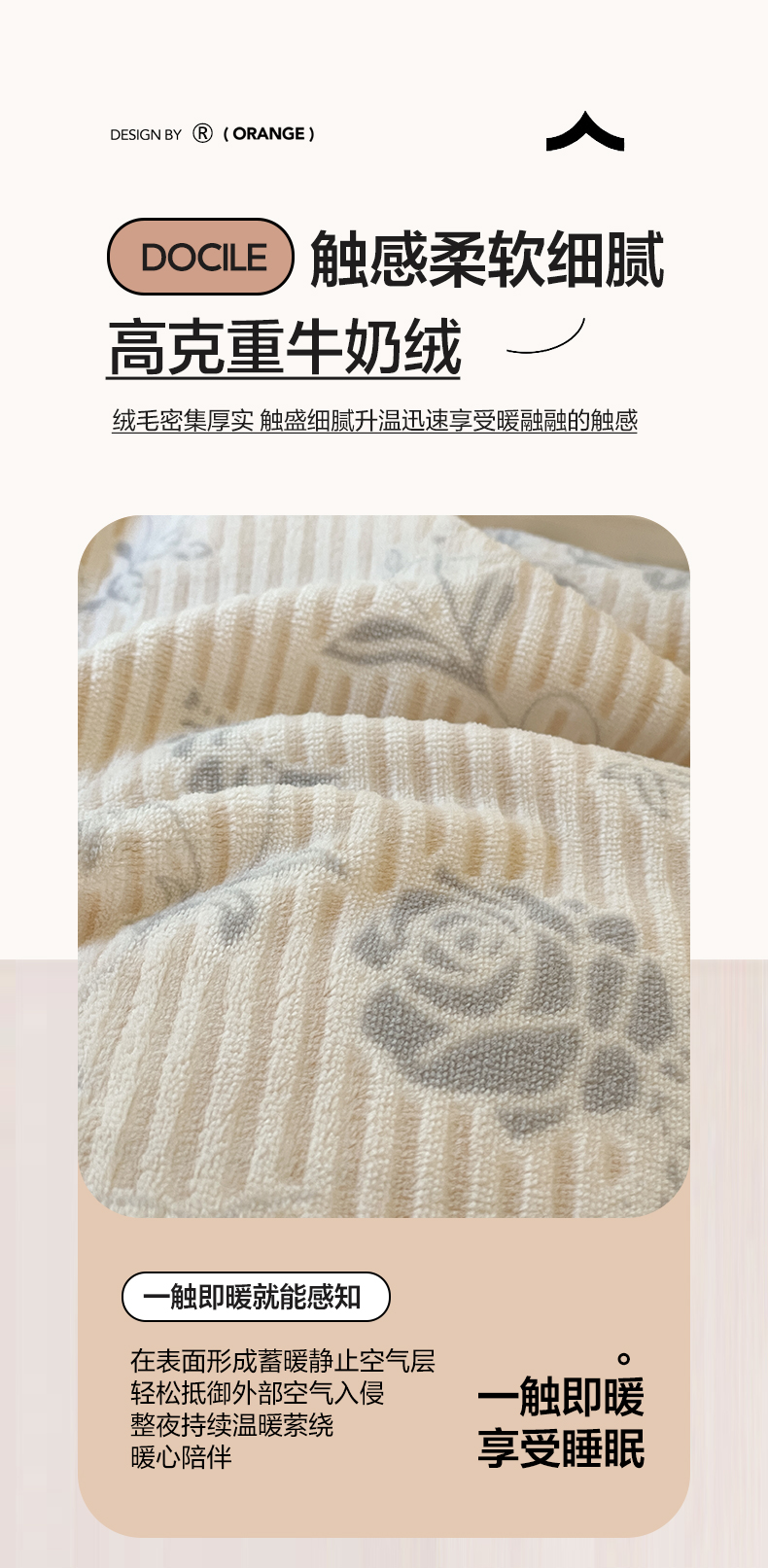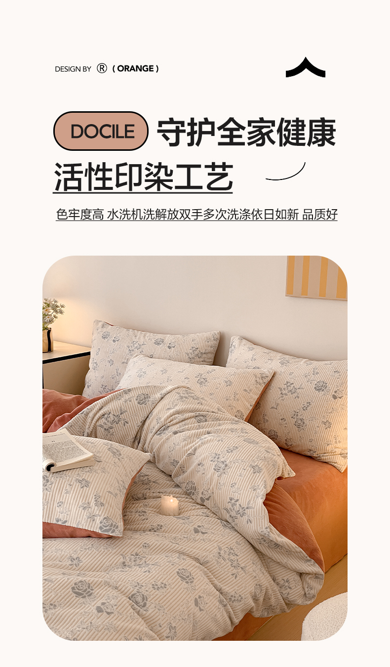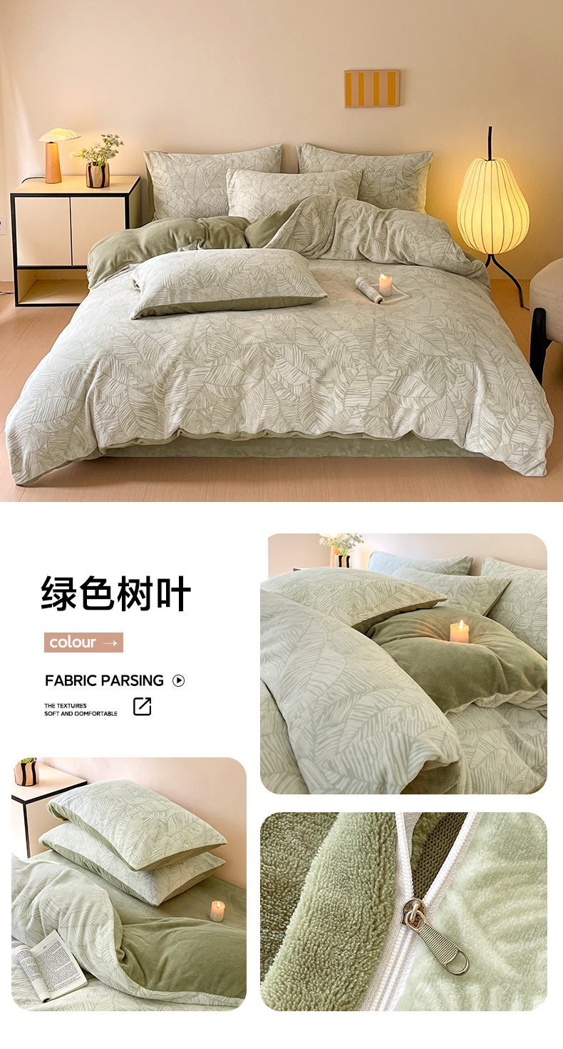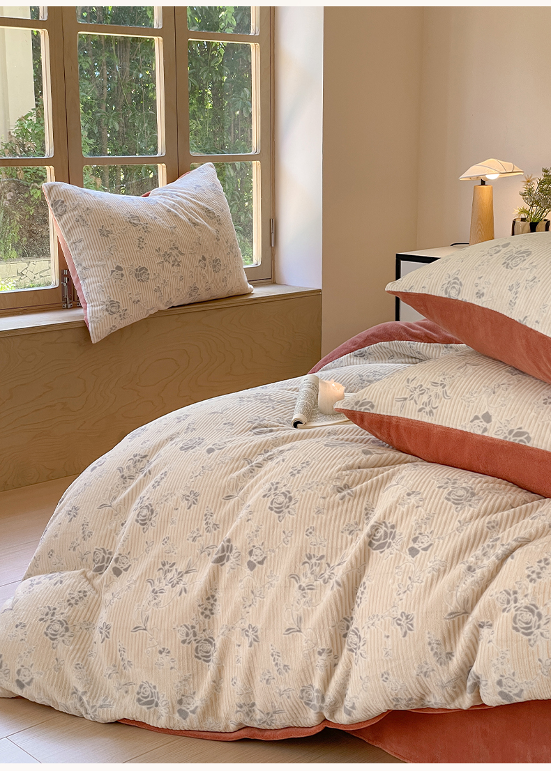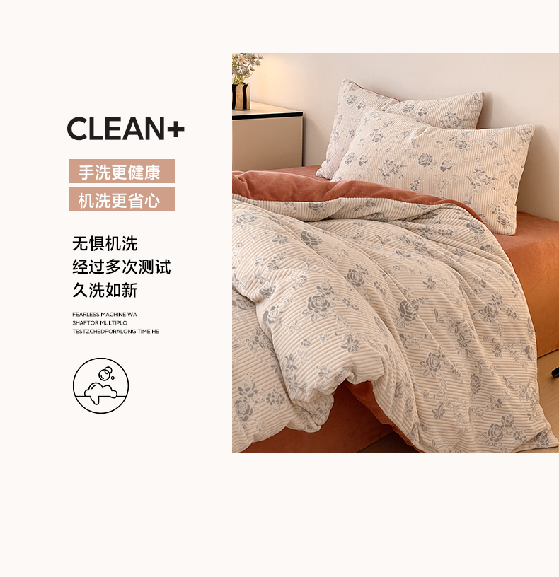 商品名称:雅居纺家纺 2025新款花卉雕花绒加厚保暖四件套 焦糖花朵