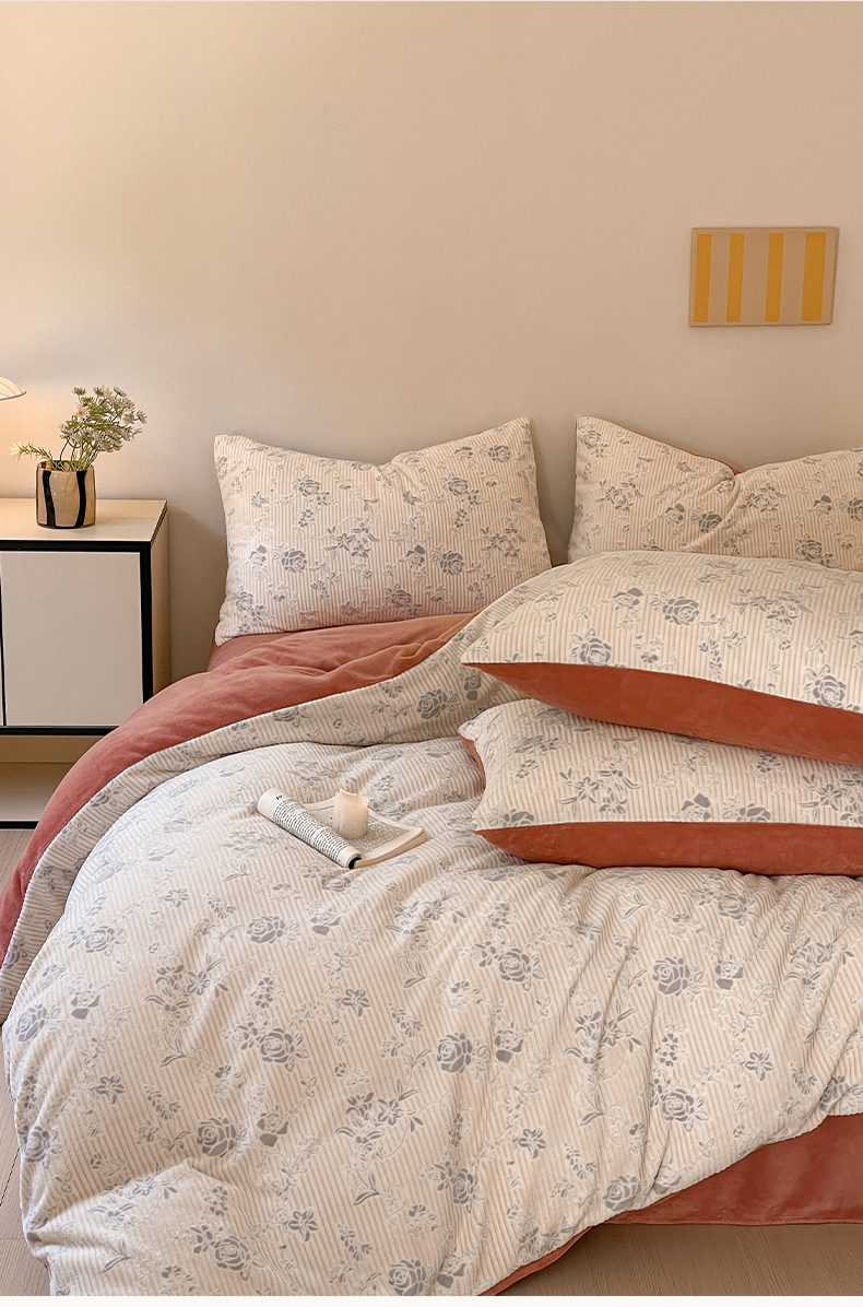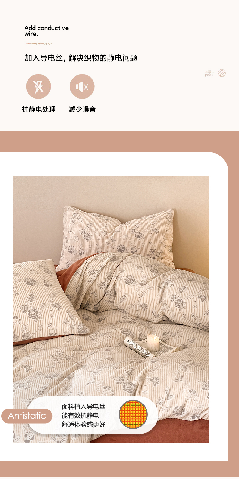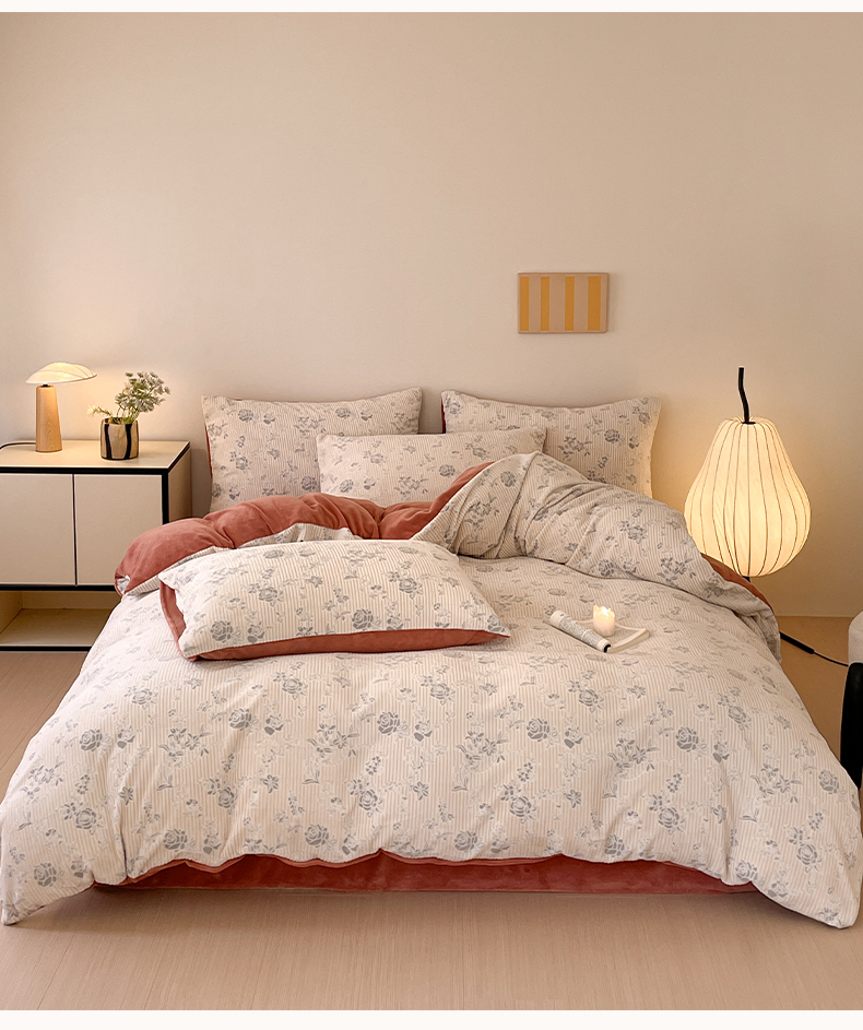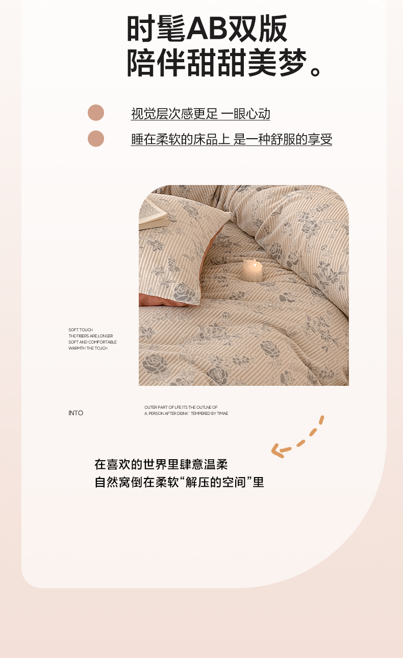 商品名称:雅居纺家纺 2025新款花卉雕花绒加厚保暖四件套 焦糖花朵