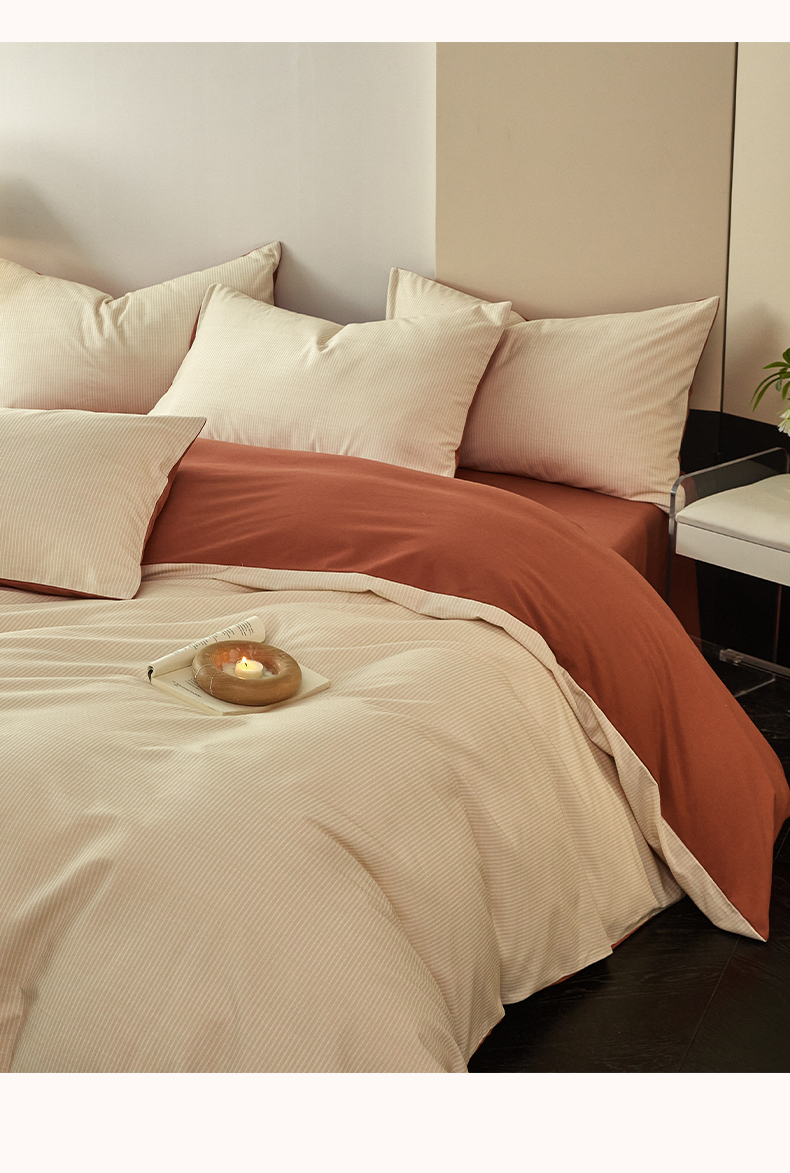 雅居纺家纺 2025新款简约款全棉磨毛四件套 宁静-焦糖条