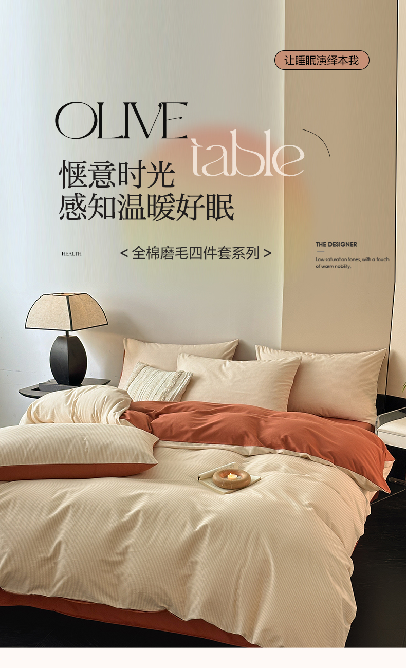 商品名称:雅居纺家纺 2025新款简约款全棉磨毛四件套 宁静-焦糖条