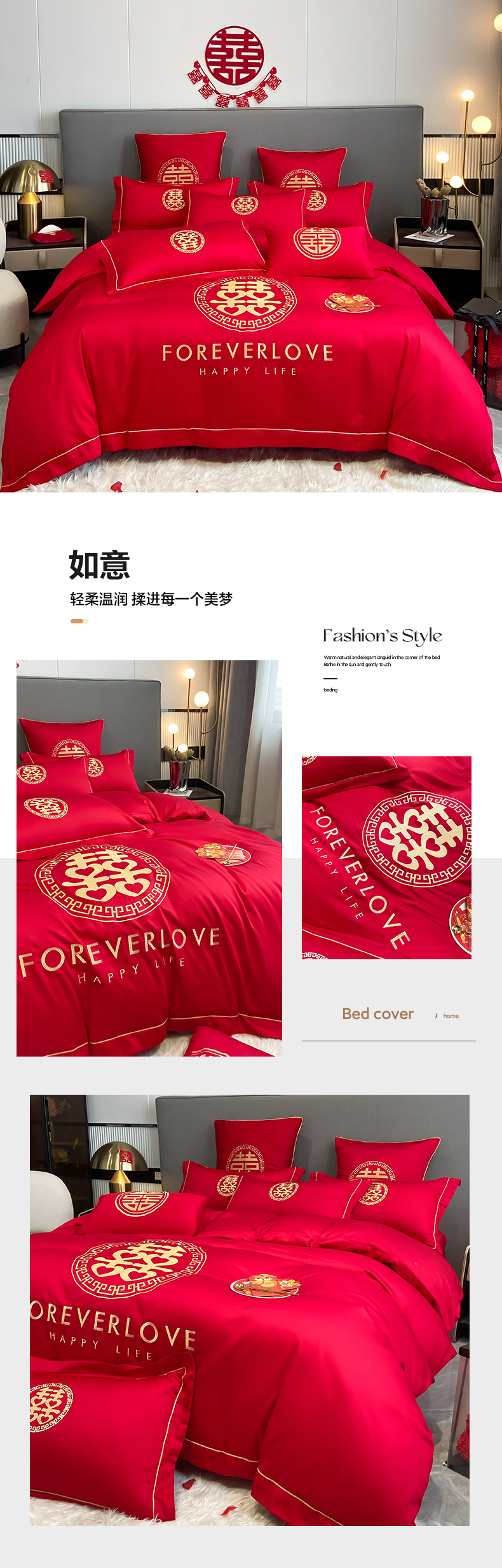 (总)花愿(原花纪) 2026新款婚庆刺绣四件套(礼盒款),浪漫花园-红,浪漫一生,龙凤呈祥,满心欢喜,天赐良缘,喜气洋洋,喜结良缘