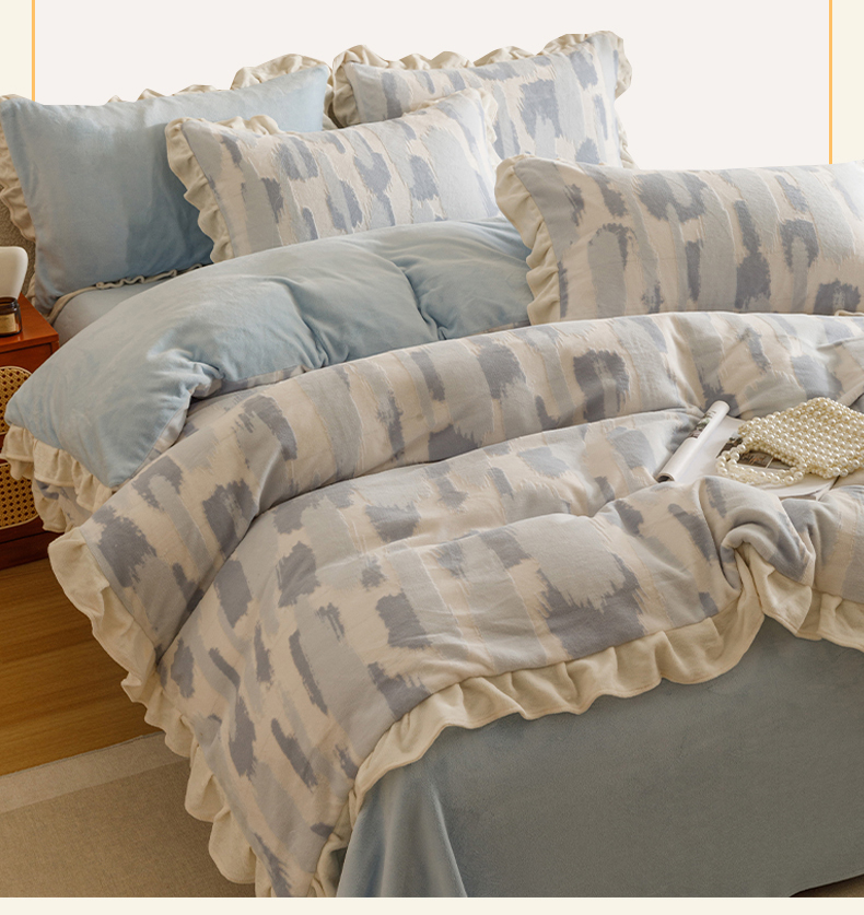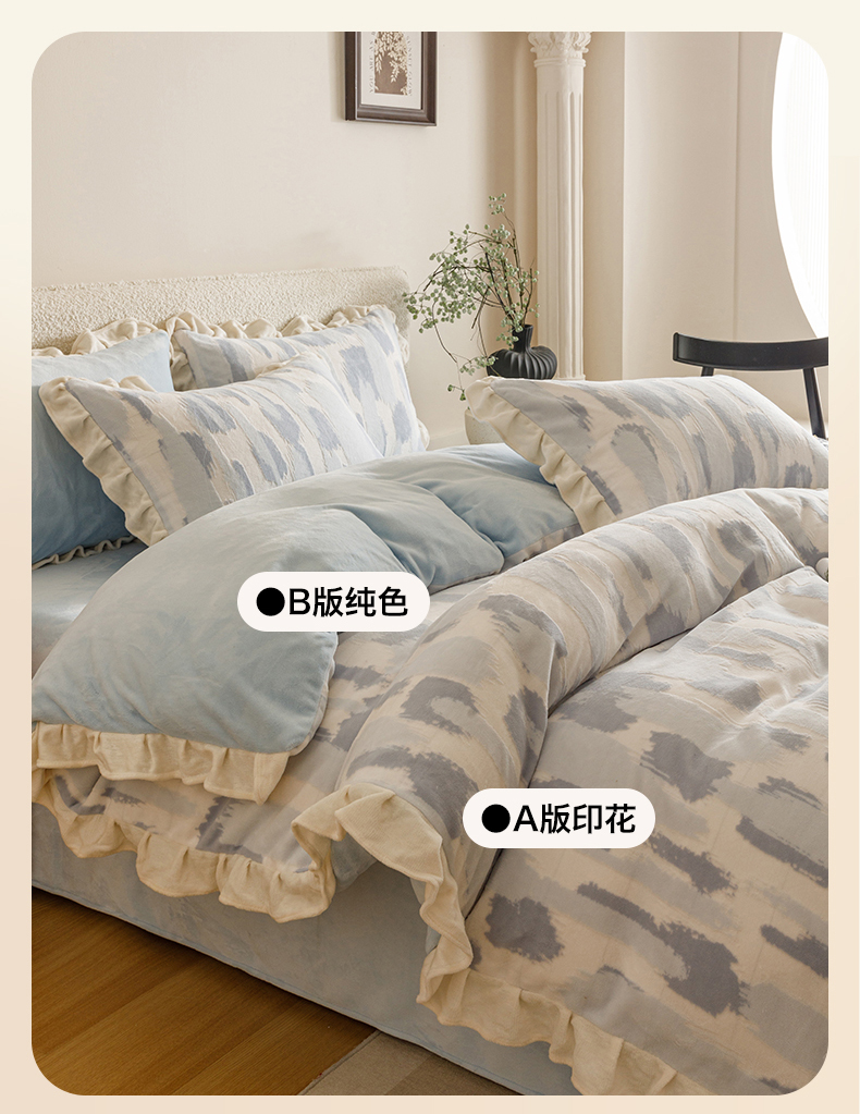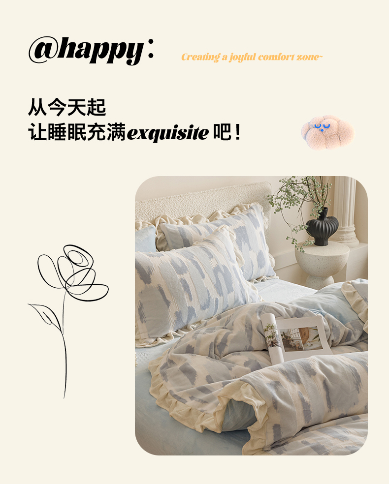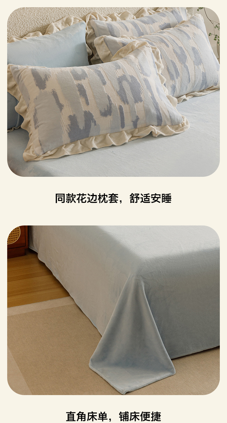 当前位置: 91家纺网 > 商品网购 > 床品套件 > 四件套 > 牛奶绒四件套 > 恬思语家纺 2025新款亲肤舒适韩风小清新花边牛奶绒四件套 奇想-蓝