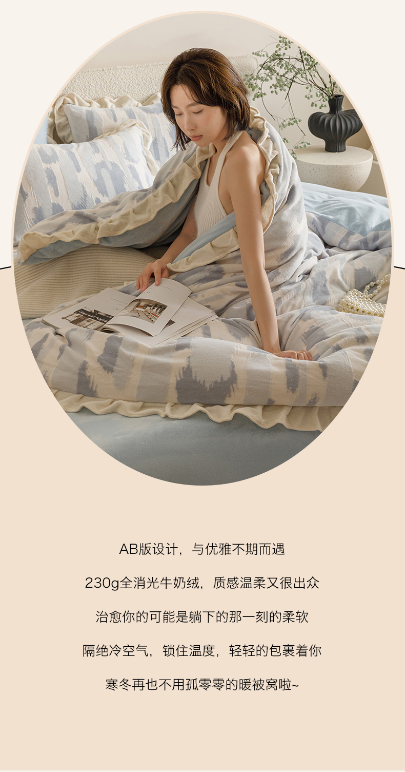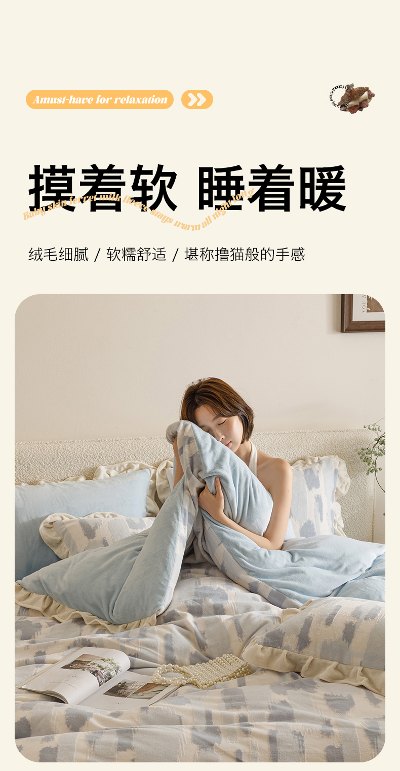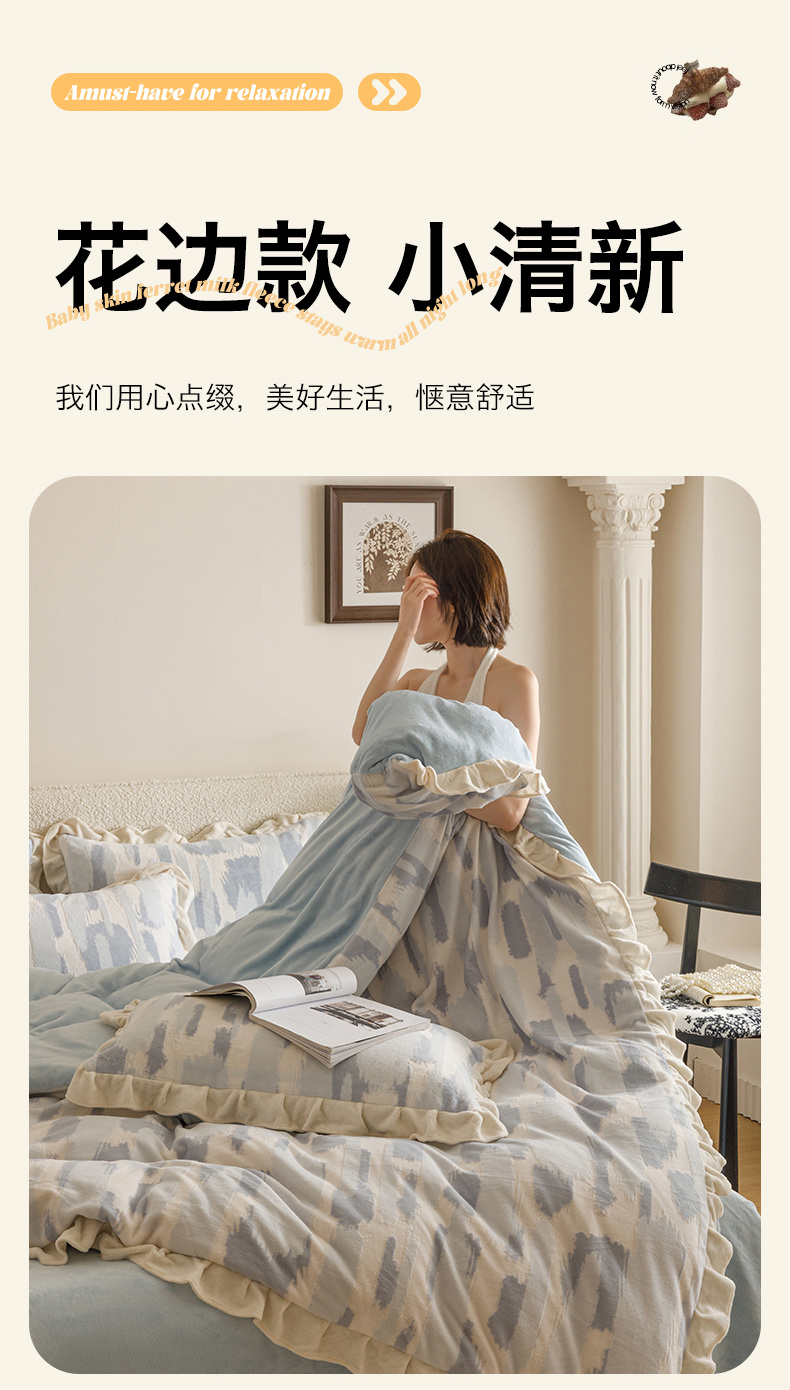当前位置: 91家纺网 > 商品网购 > 床品套件 > 四件套 > 牛奶绒四件套 > 恬思语家纺 2025新款亲肤舒适韩风小清新花边牛奶绒四件套 奇想-蓝