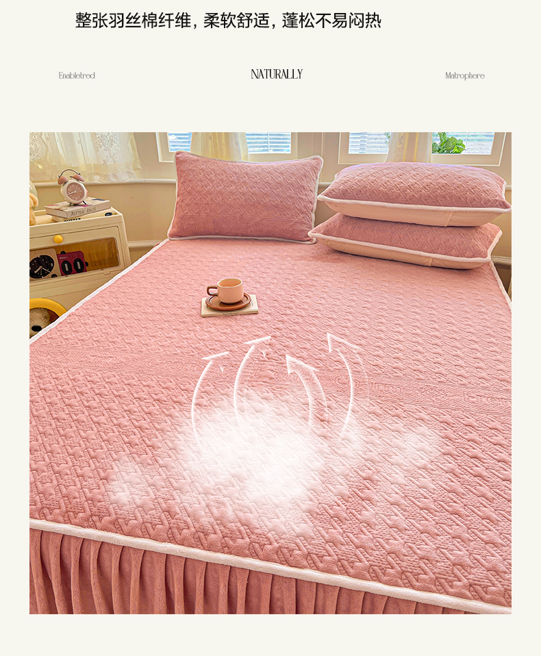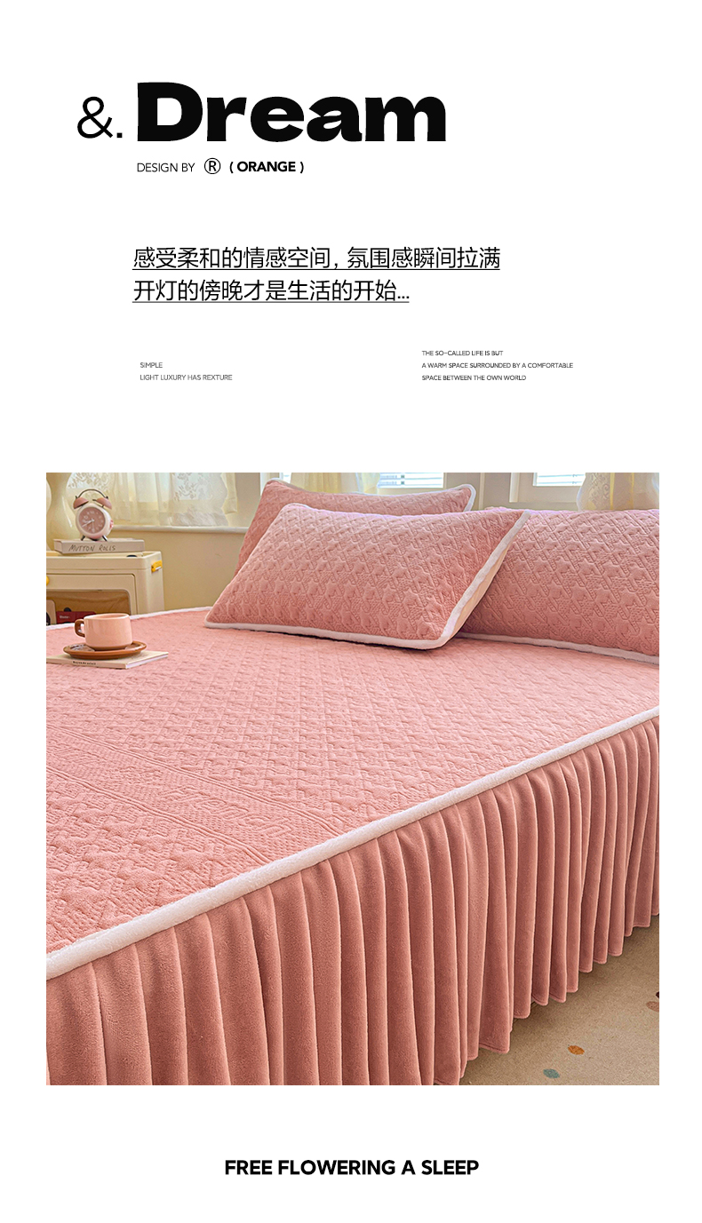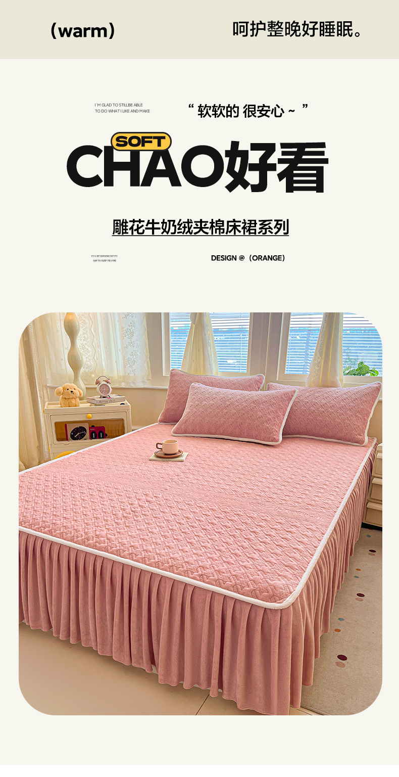 卡伦家纺 2025新款抗菌雕花牛奶绒千鸟格夹棉床裙系列 千鸟格床笠-粉