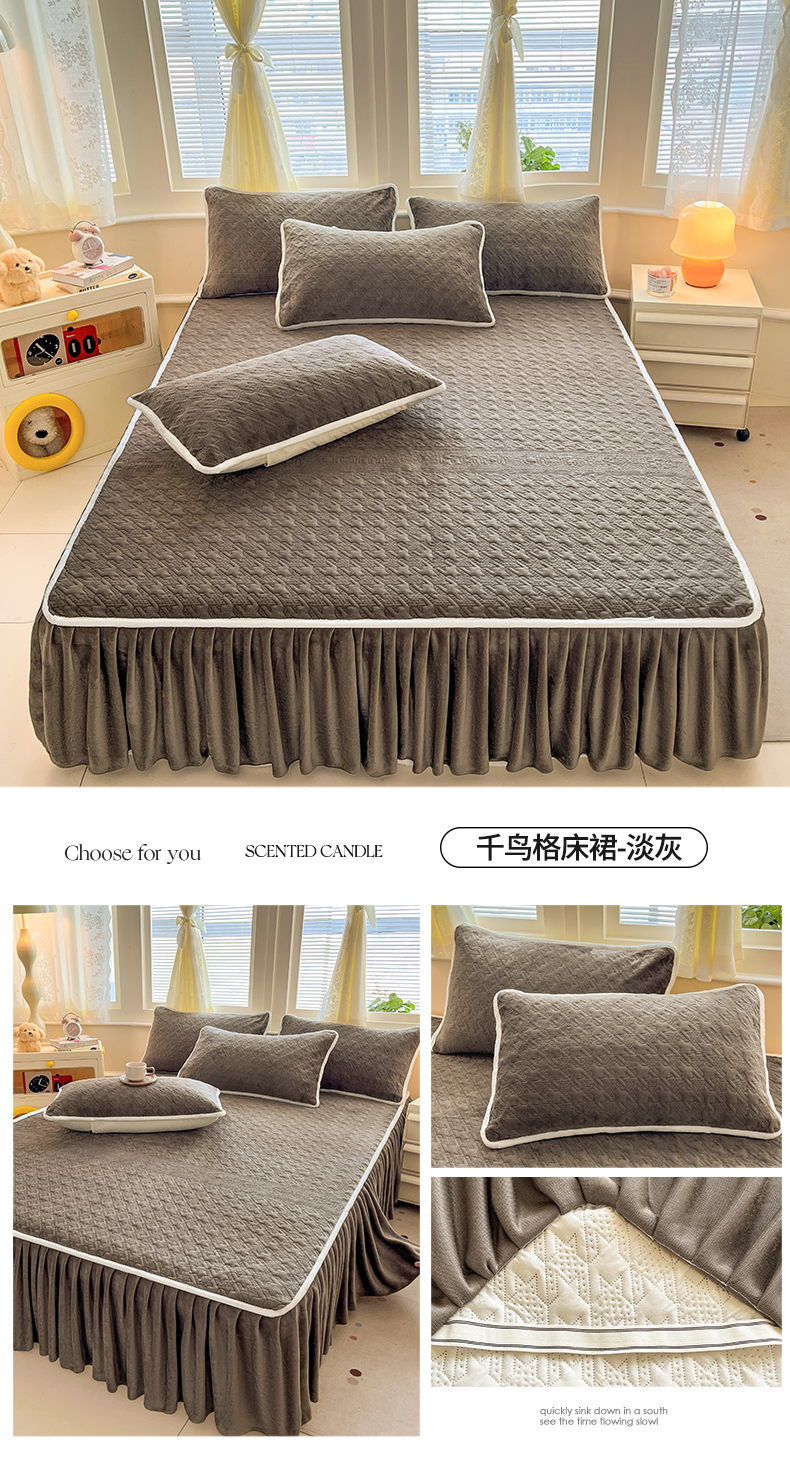 (总)卡伦家纺 2025新款抗菌雕花牛奶绒千鸟格夹棉床裙系列,千鸟格床笠-淡灰,千鸟格床笠-粉,千鸟格床笠-黄,千鸟格床笠-灰,千鸟格床笠-咖,千鸟格床笠-蓝,千鸟格床笠-绿,千鸟格床笠-暖橙,千鸟格床笠-紫