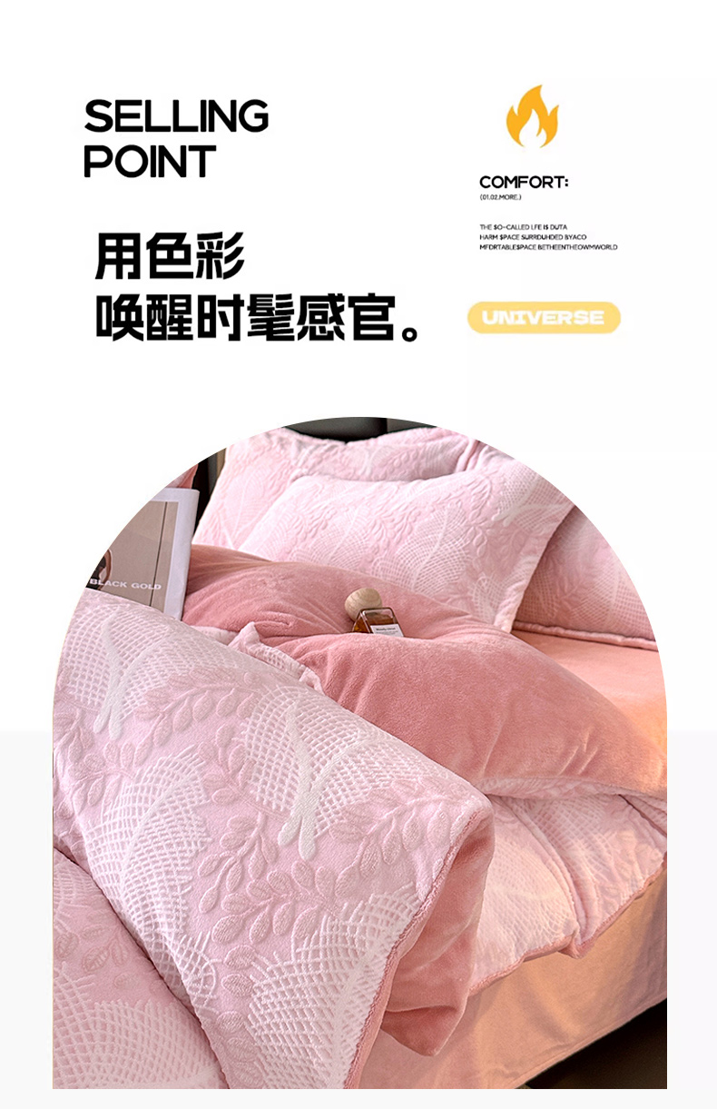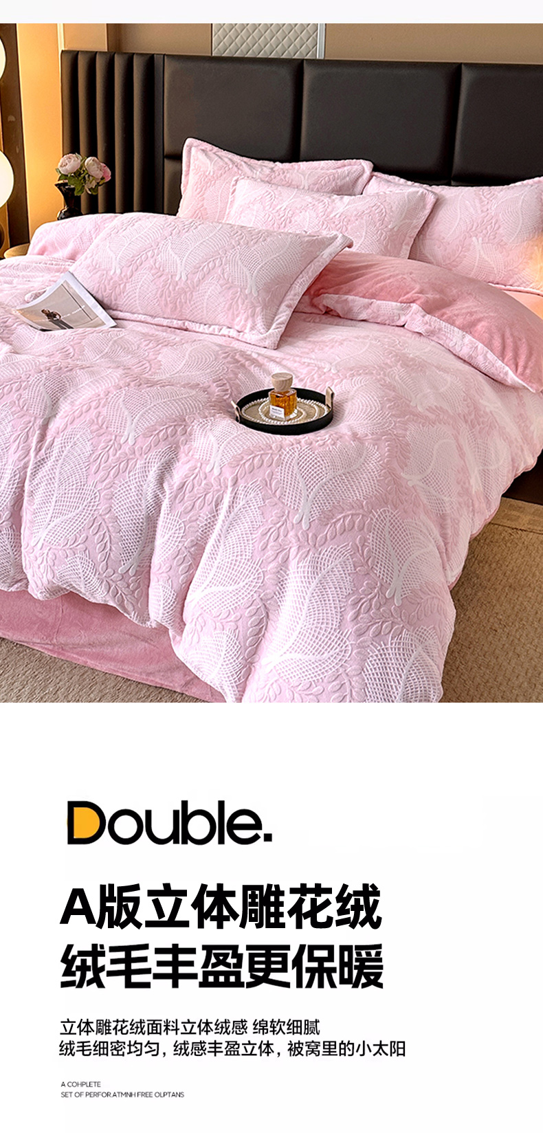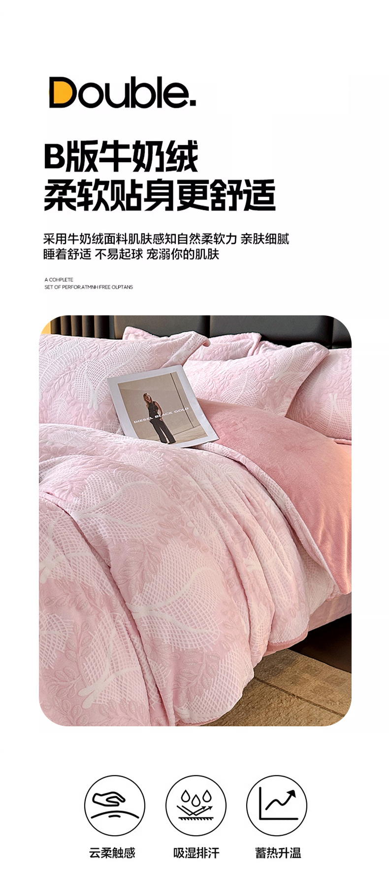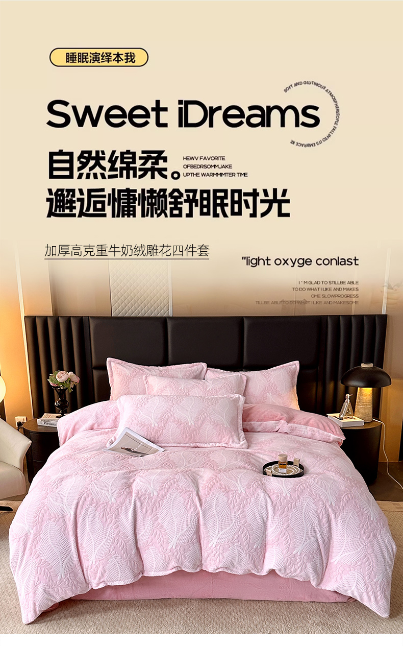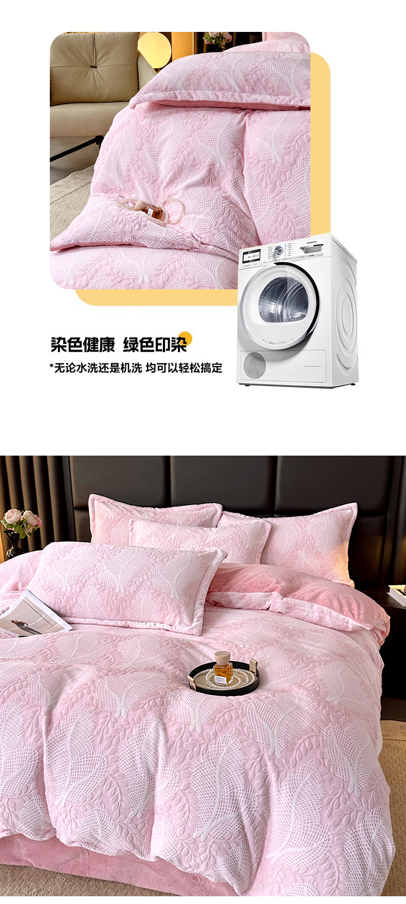 当前位置: 91家纺网 > 商品网购 > 床品套件 > 四件套 > 牛奶绒四件套 > 家贝爱 2025新款230克烂花雕花牛奶绒四件套 芳草粉