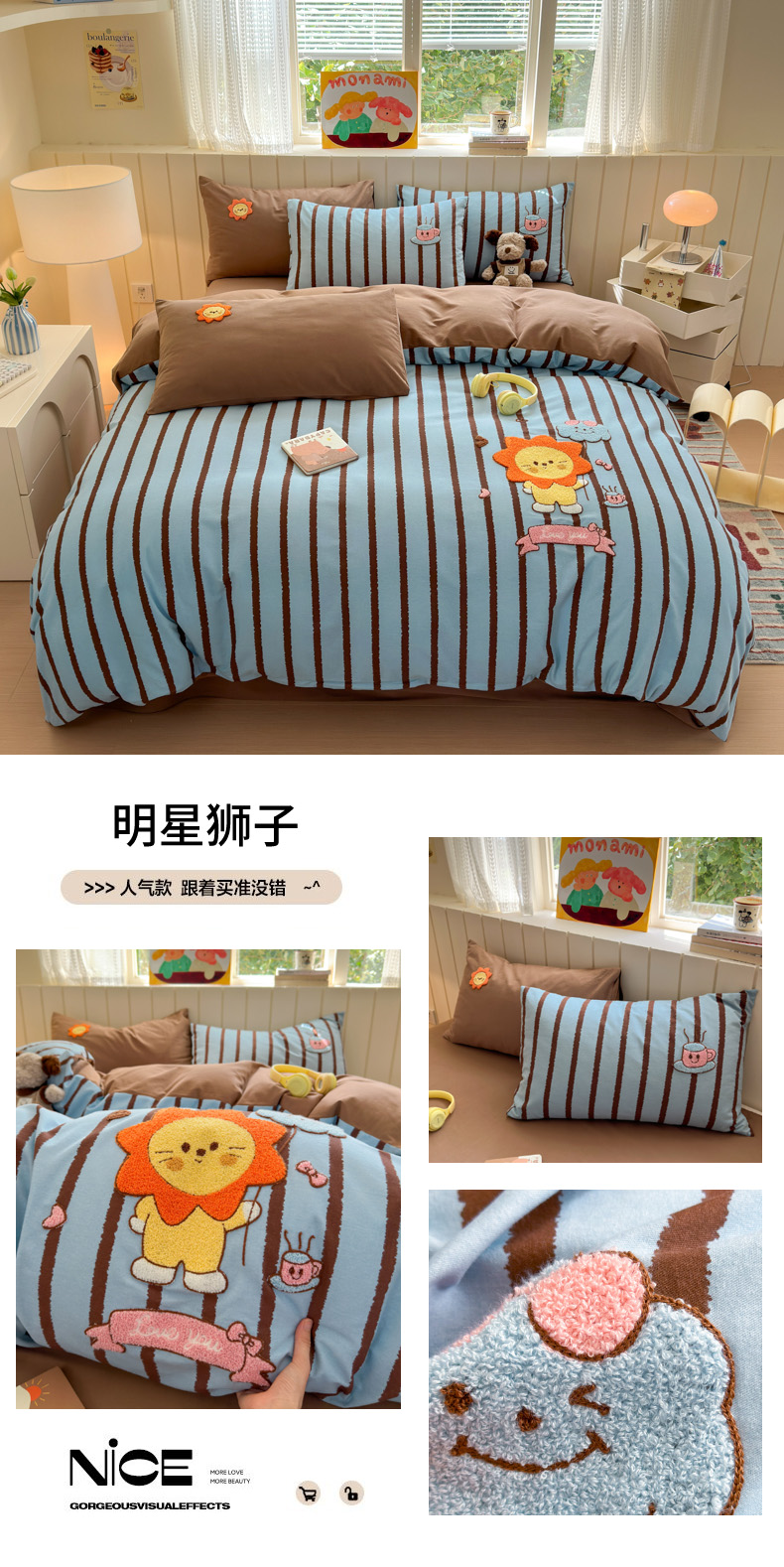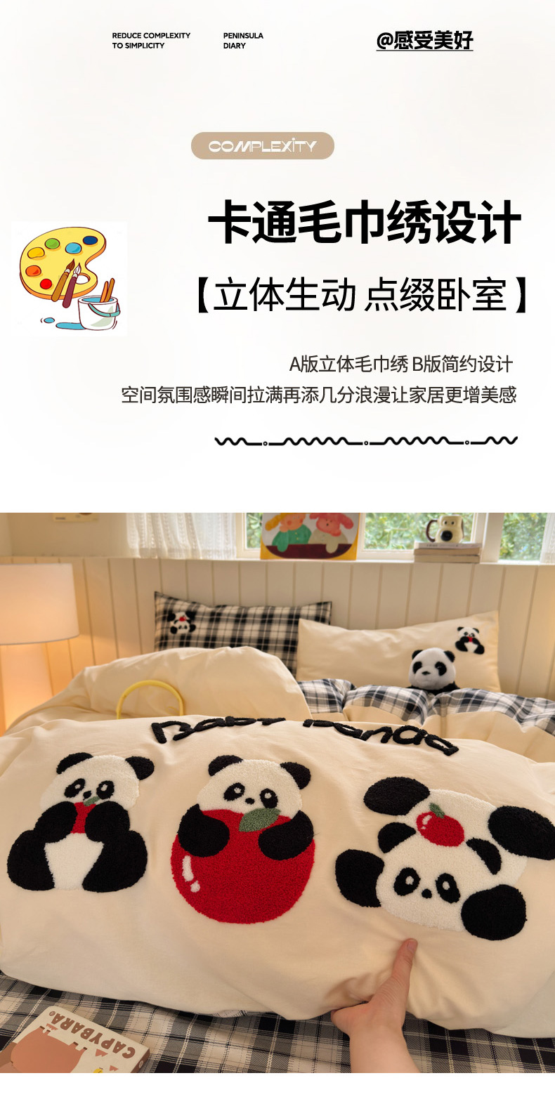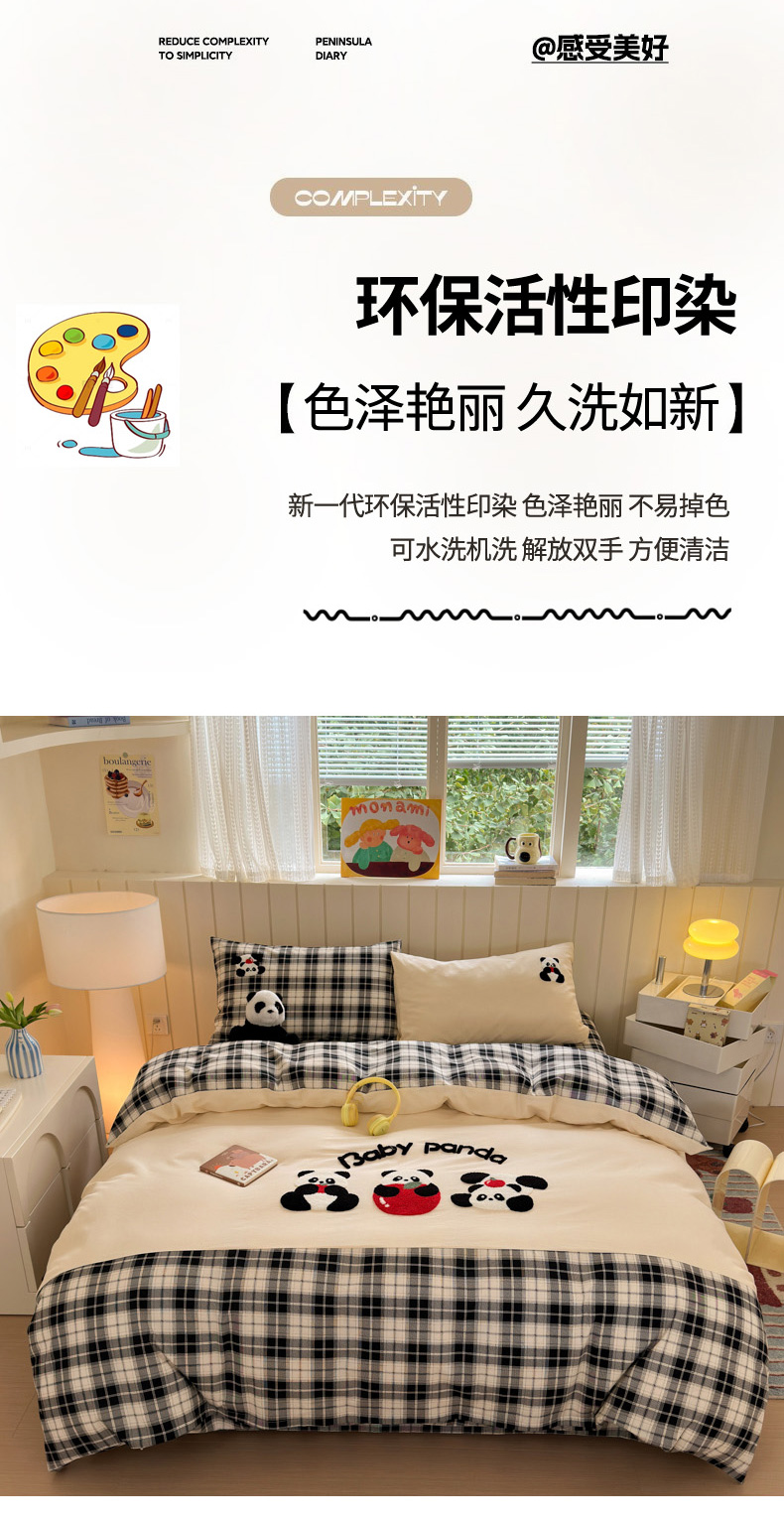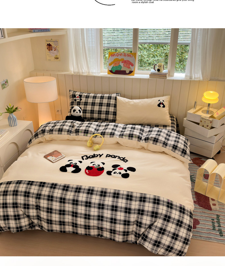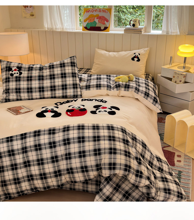 当前位置: 91家纺网 > 商品网购 > 床品套件 > 四件套 > 毛巾绣四件套 > 如意朵 2025新款全棉磨毛卡通毛巾绣四件套(专版花型)-场景二 苹果熊猫