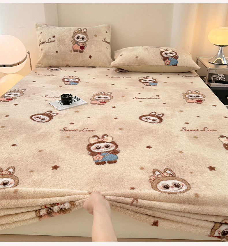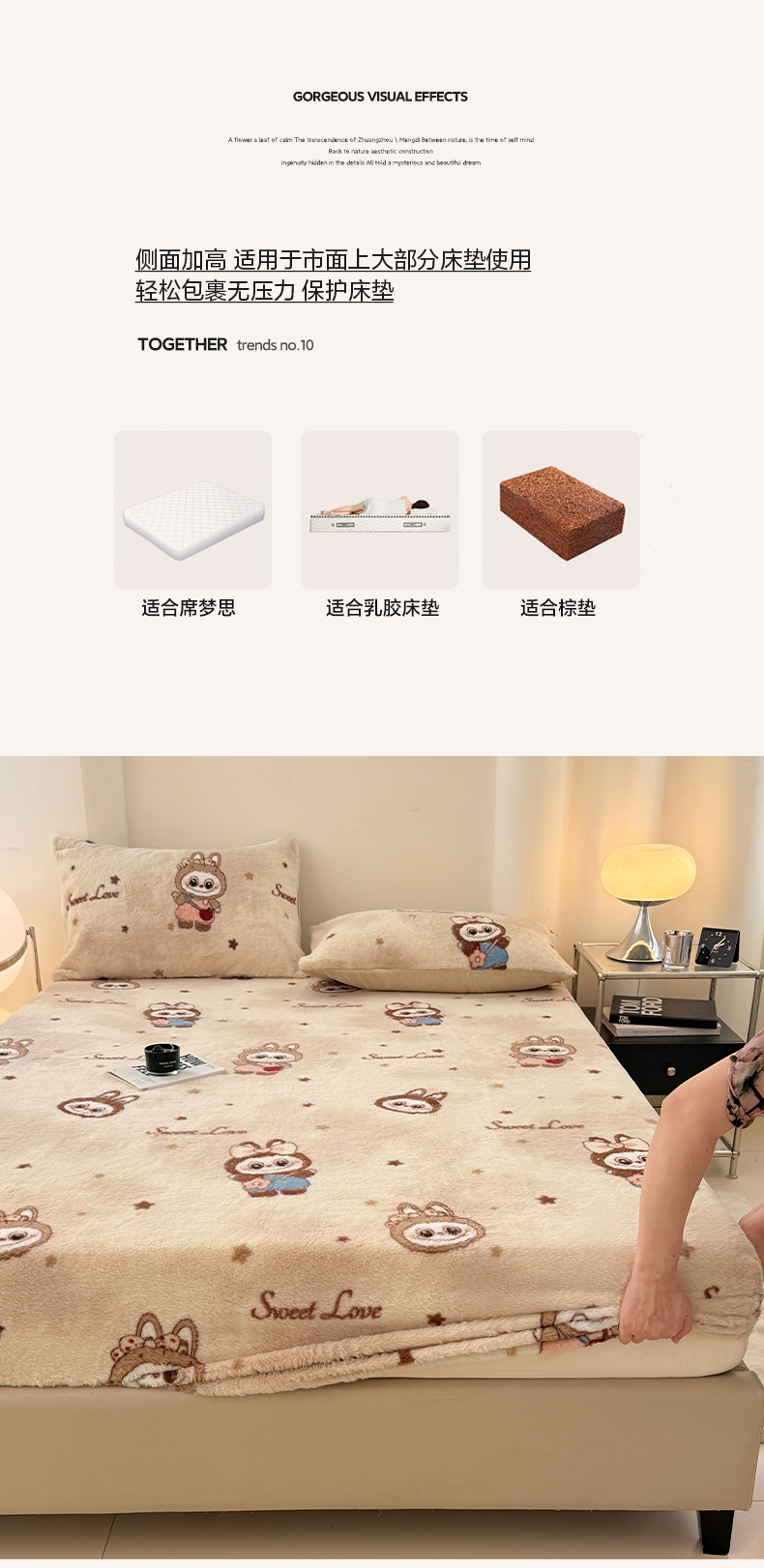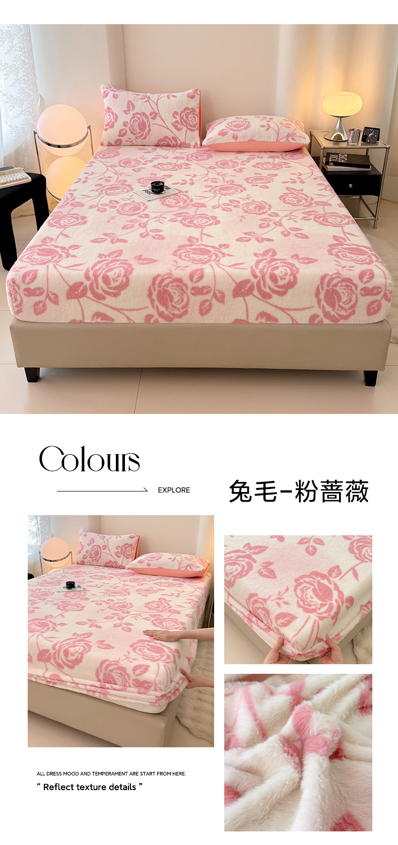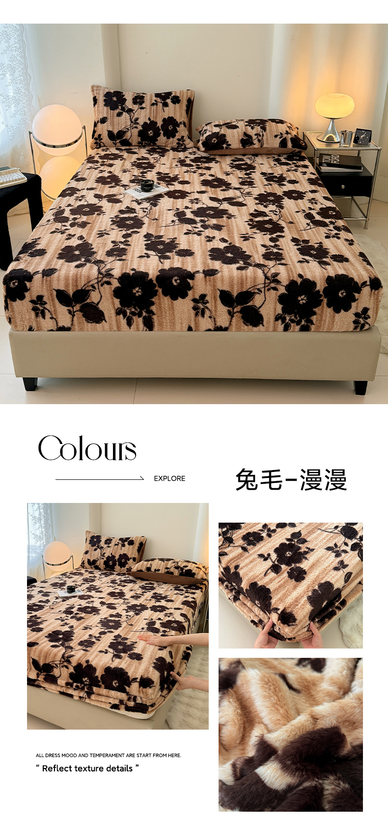• 91家纺网 家纺一手货源 找家纺 悦织语 2025新款高克重加厚美拉德獭兔毛床笠床褥子床护垫 兔毛-拉布布