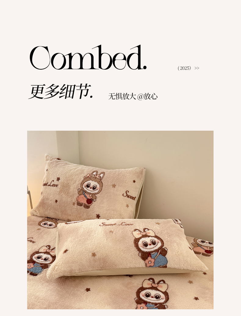 (总)悦织语 2025秋冬新品200克加厚A面印花牛奶绒+B面牛奶绒豆豆四件套,草莓熊,笨笨熊,缤纷花,茶话会,呆萌狗,粉色蝴蝶结,橘子兔,恐龙总动员,太空人,甜蜜小兔,象宝宝,小樱桃,小棕熊,星空,熊猫花花,紫色花语