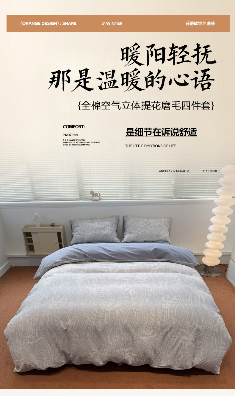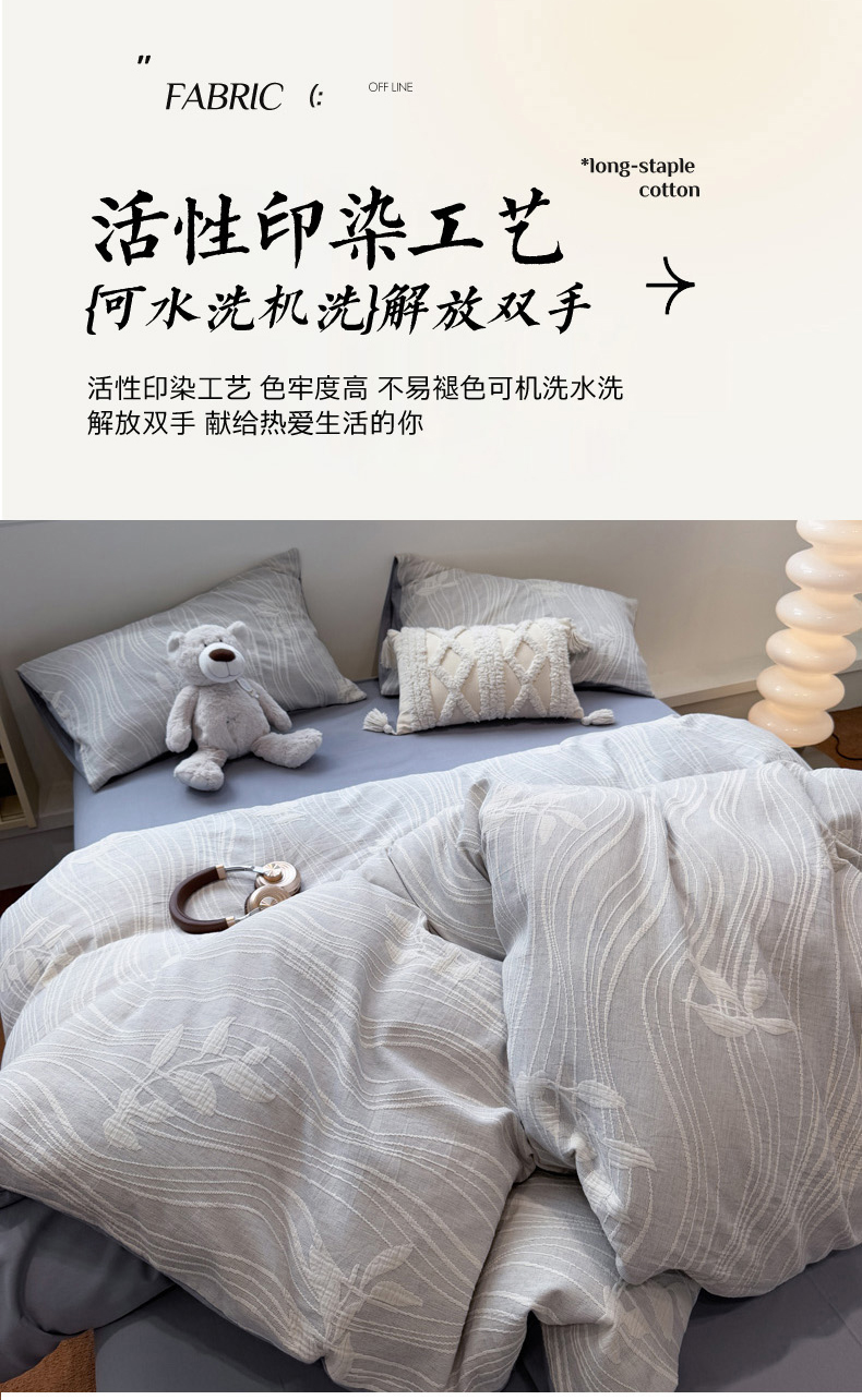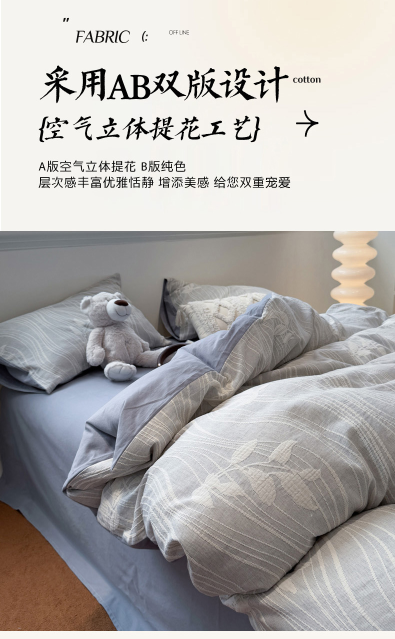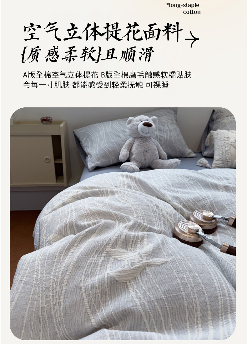 当前位置: 91家纺网 > 商品网购 > 床品套件 > 四件套 > 普通磨毛四件套 > 慕尚家纺 2025新款全棉空气立体提花磨毛四件套 线条-白蓝