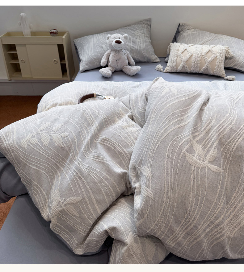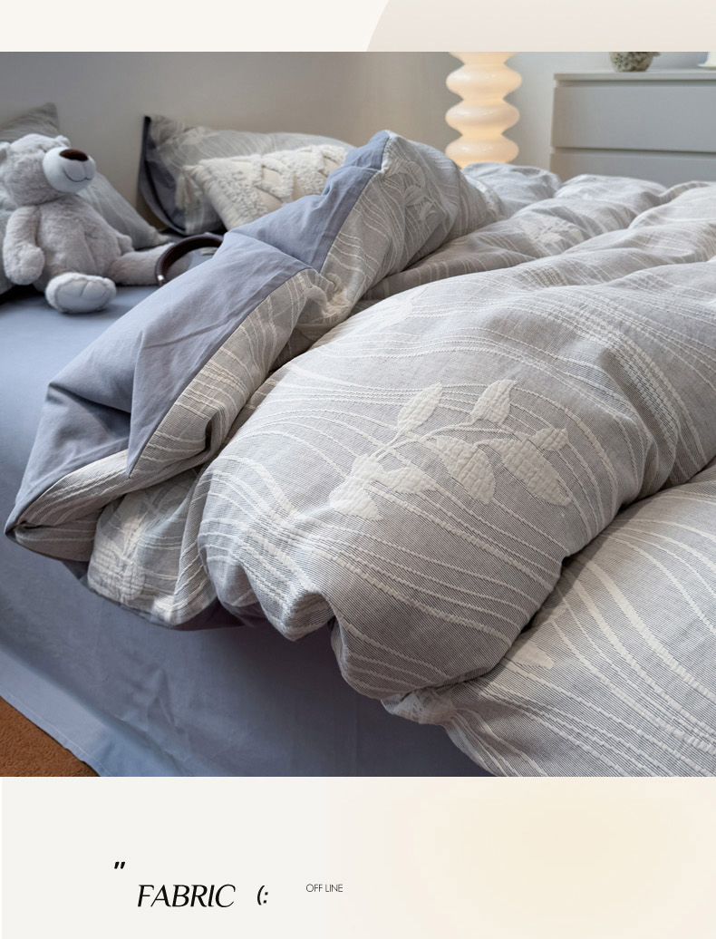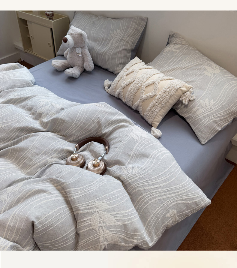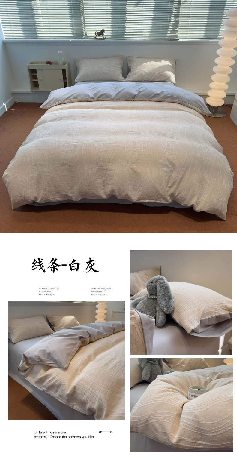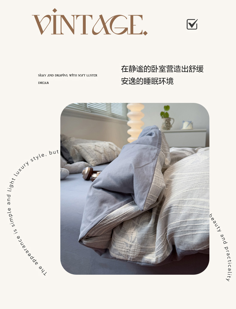 当前位置: 91家纺网 > 商品网购 > 床品套件 > 四件套 > 普通磨毛四件套 > 慕尚家纺 2025新款全棉空气立体提花磨毛四件套 线条-白蓝