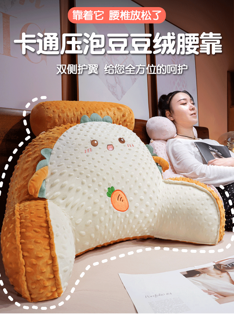 商品名称:仟亿莱 2025新款卡通压泡豆豆绒拥抱式腰靠 拥抱豆豆兔子