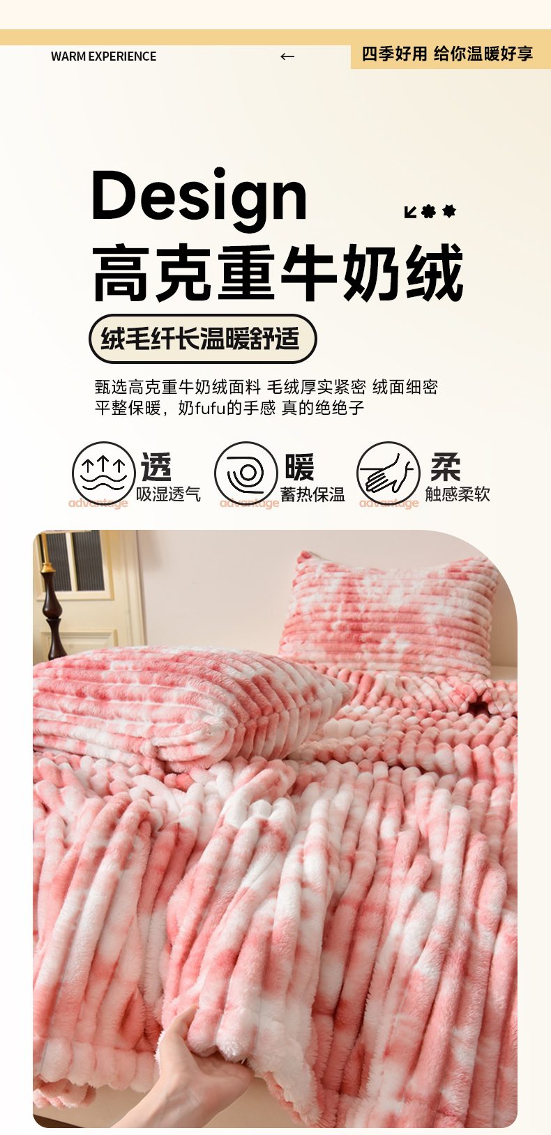 商品名称:圣楚家纺 2025秋冬新款保暖亲肤舒适牛奶绒抽条毛毯毯子 卡其