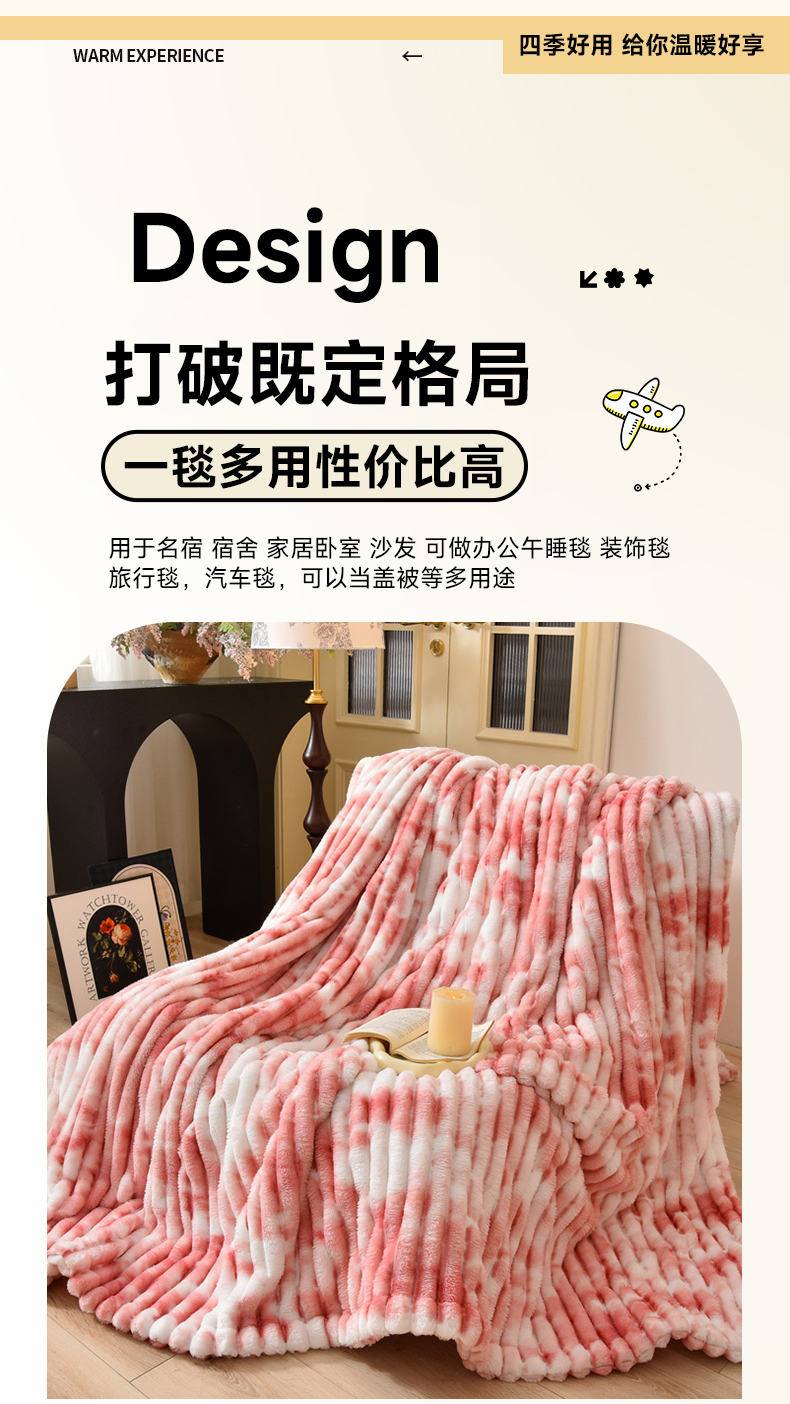 圣楚家纺 2025秋冬新款保暖亲肤舒适牛奶绒抽条毛毯毯子 卡其
